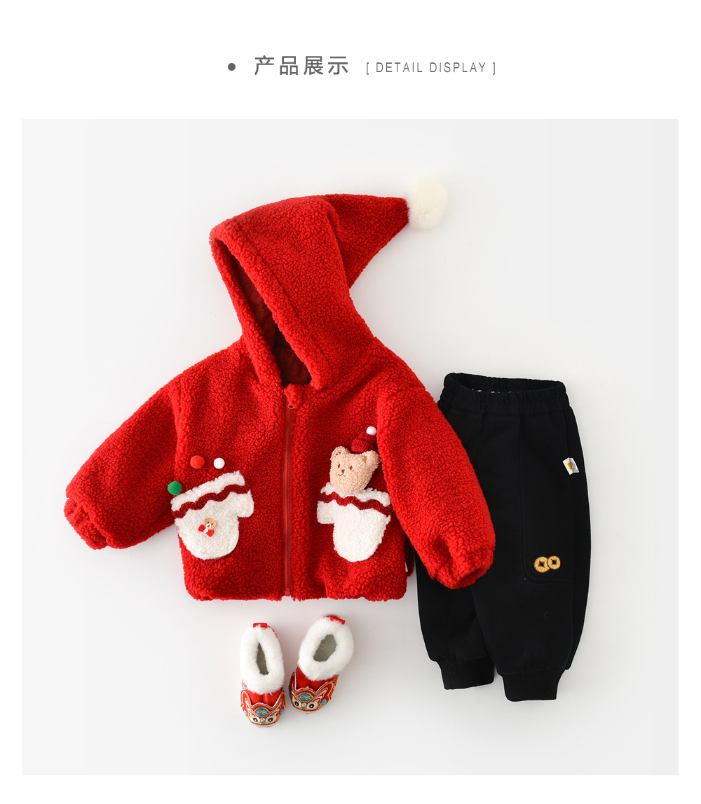 2024 소년 소녀 크리스마스 겨울 후드 스웨터 어린이 지퍼 카디건 곰 어린이 코트 95675