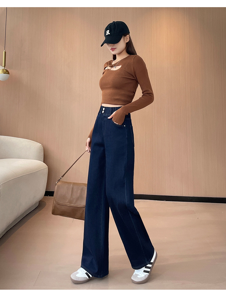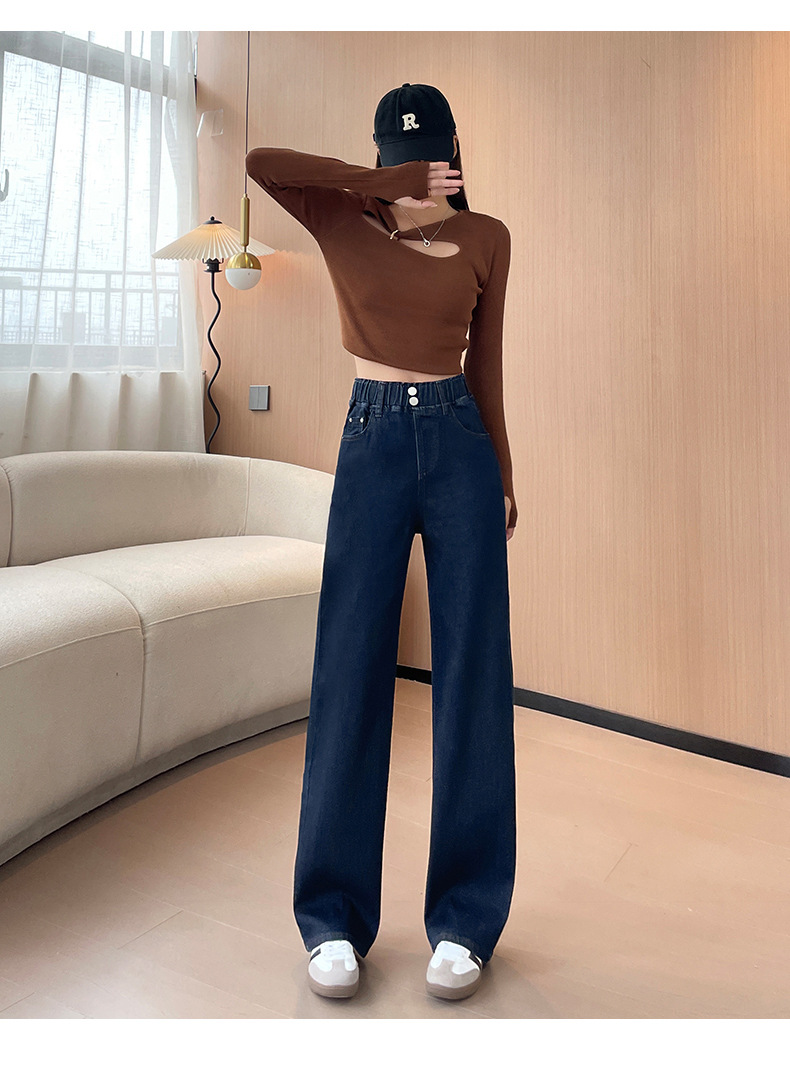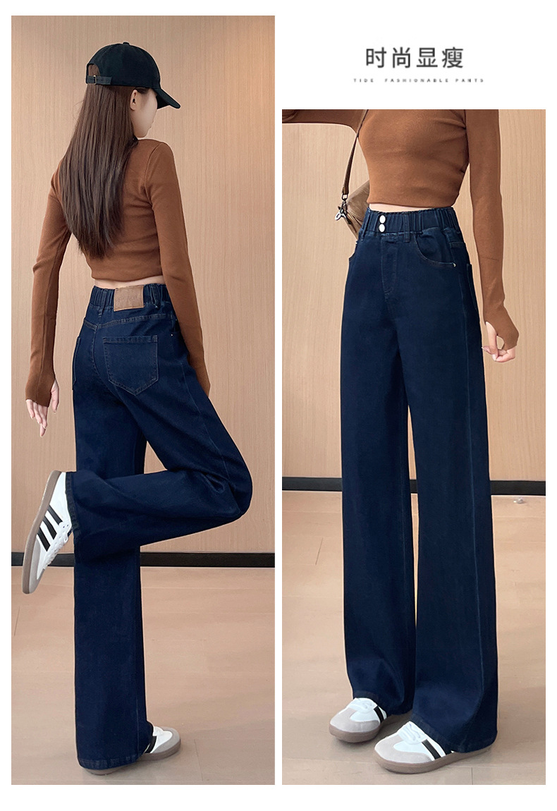 타닌 좁은 직선 다리 넓은 다리 청바지 여성용 높은 허리 슬리밍 빈티지 올 매치 느슨한 다리 바지