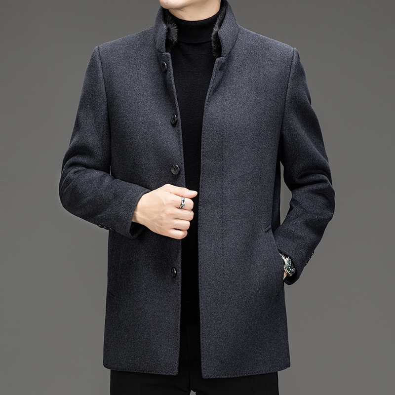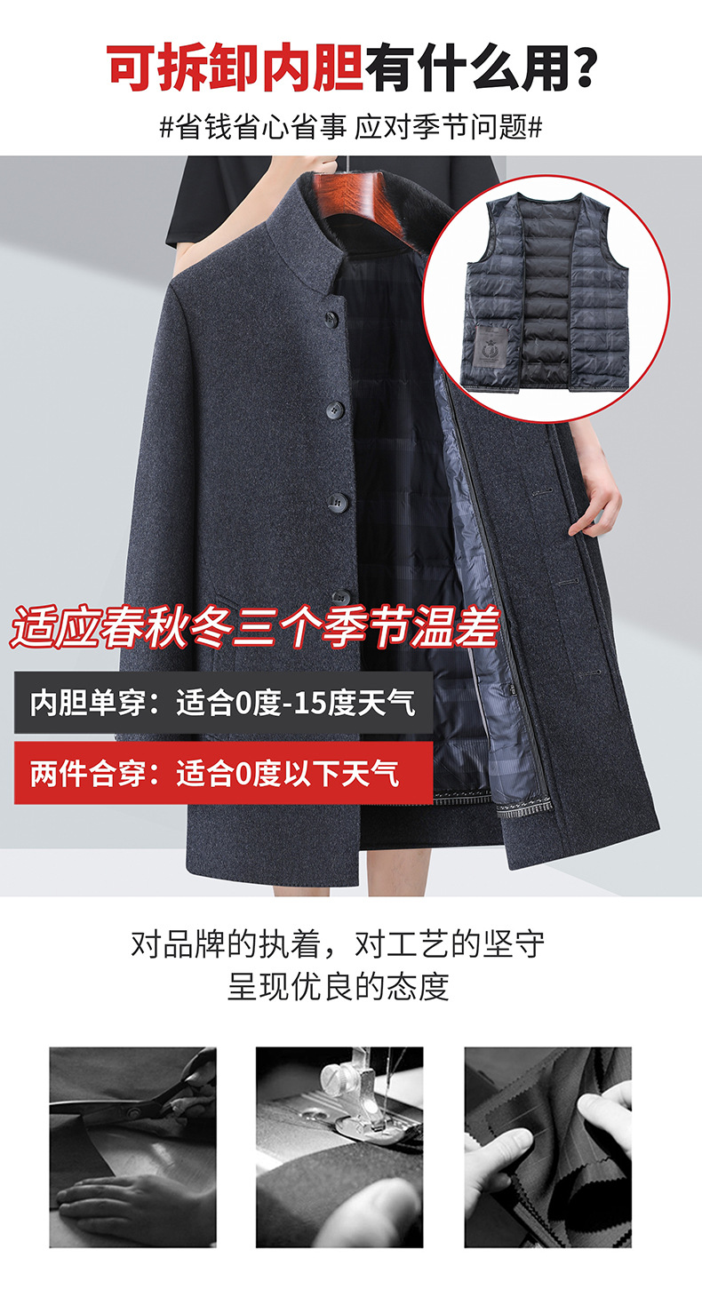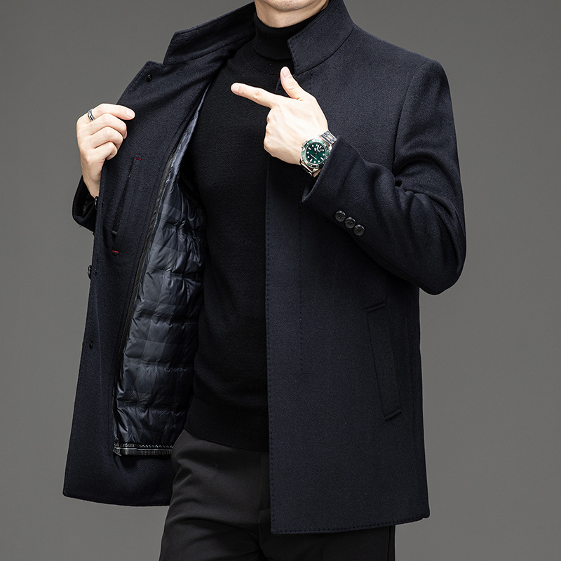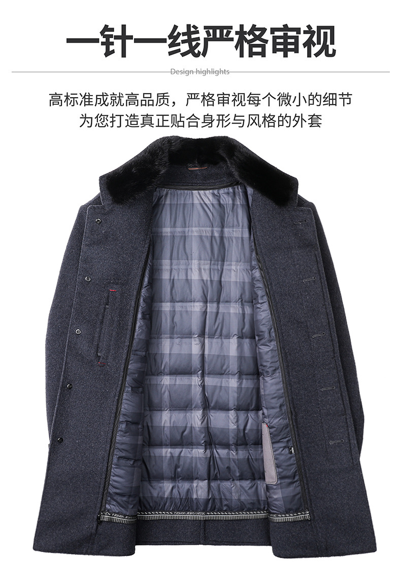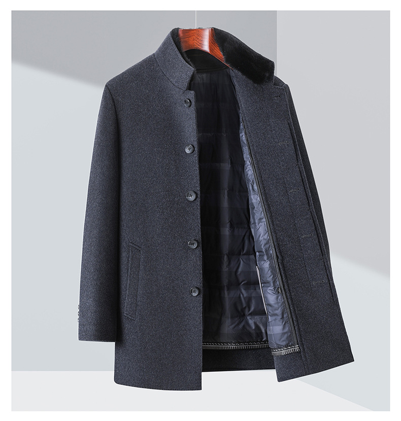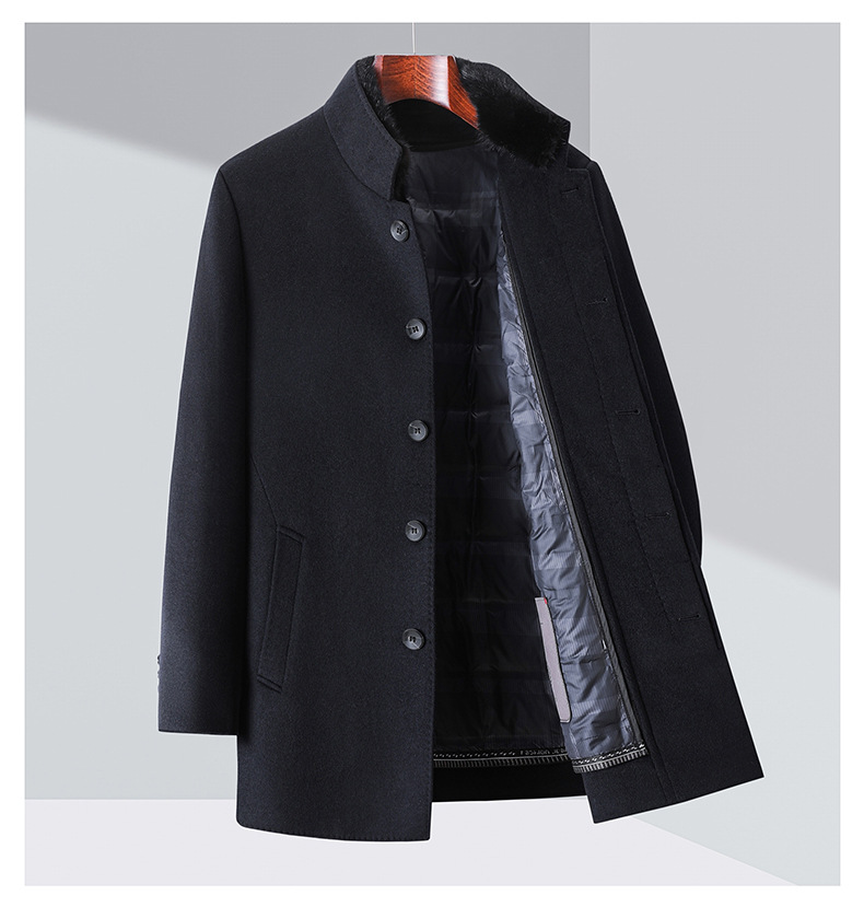 정품 고급 양모 코트 중년 아빠 남자 겨울 다운 자켓 탈착식 캐시미어 재킷