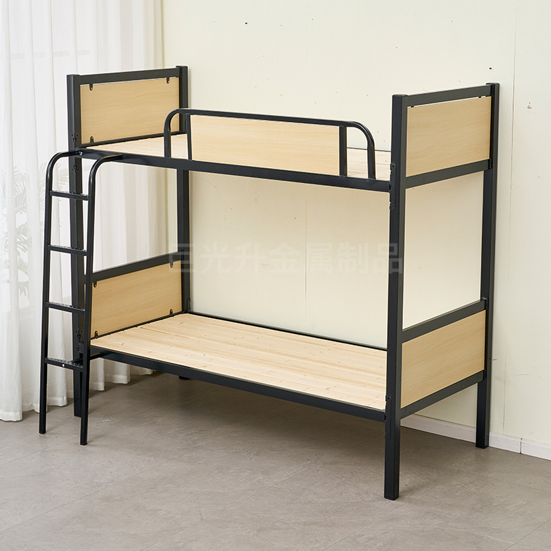 제조업체 맞춤형 대학생 아파트 침대 사다리 상하 이층 철 프레임 침대가 있는 간단한 기숙사 직원 기숙사