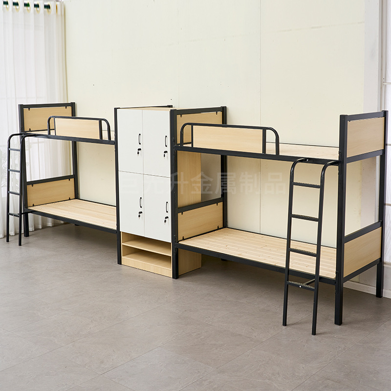 제조업체 맞춤형 대학생 아파트 침대 사다리 상하 이층 철 프레임 침대가 있는 간단한 기숙사 직원 기숙사스토어 가기