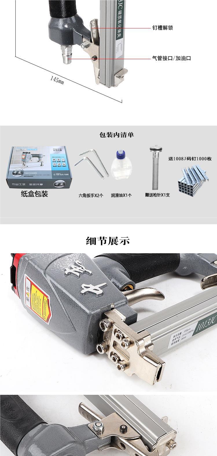 Zhongjie 네일 건 1013J 공압 네일 건 에어 네일 건 소프트 백 쿠션 U 네일 건 도어 타입 네일 건 목수 더블 네일스토어 가기