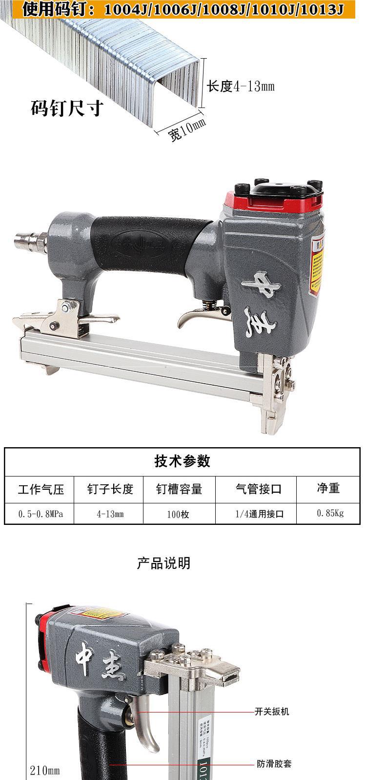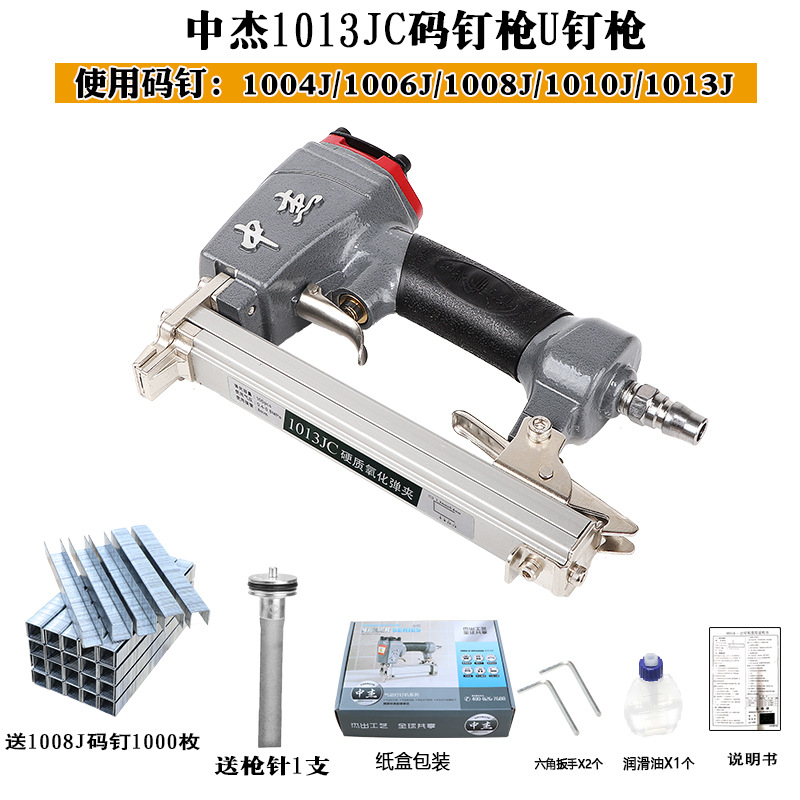 Zhongjie 네일 건 1013J 공압 네일 건 에어 네일 건 소프트 백 쿠션 U 네일 건 도어 타입 네일 건 목수 더블 네일