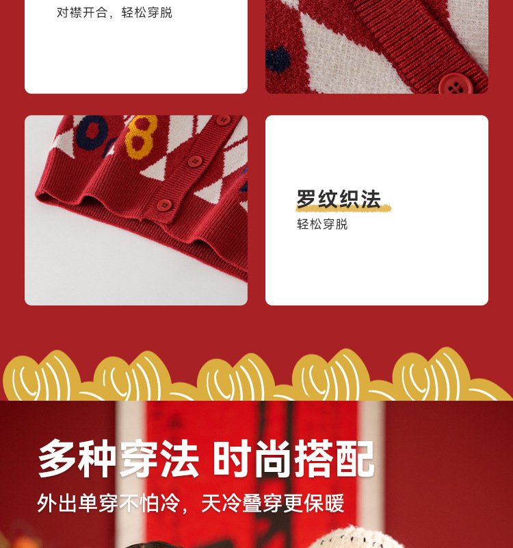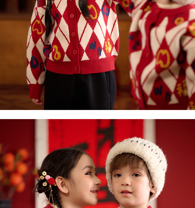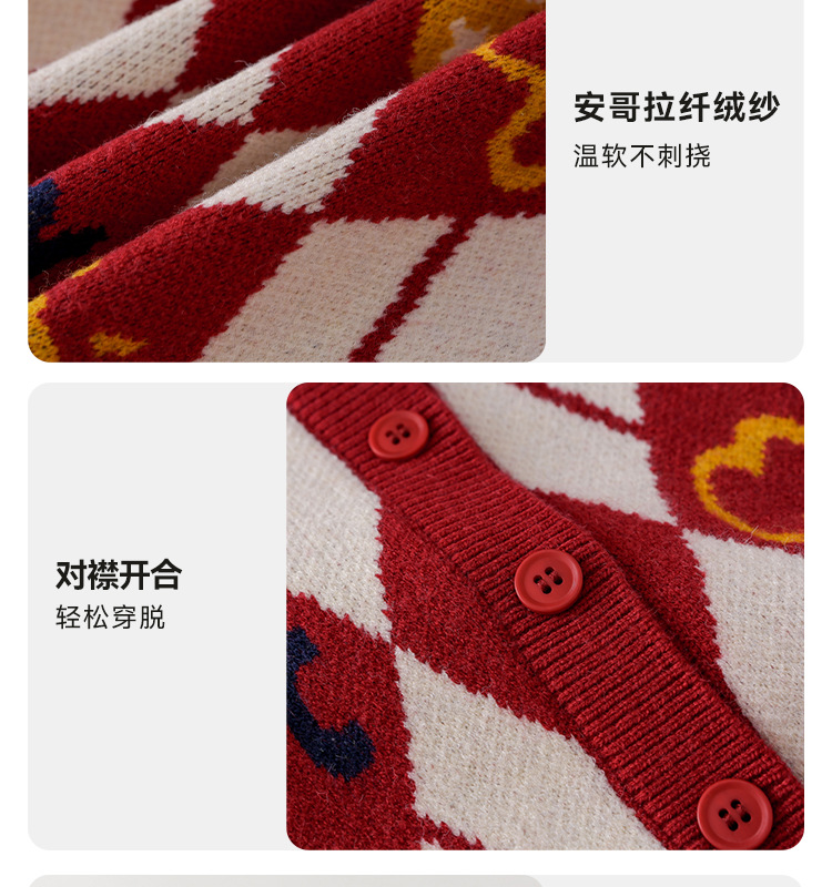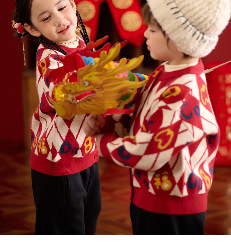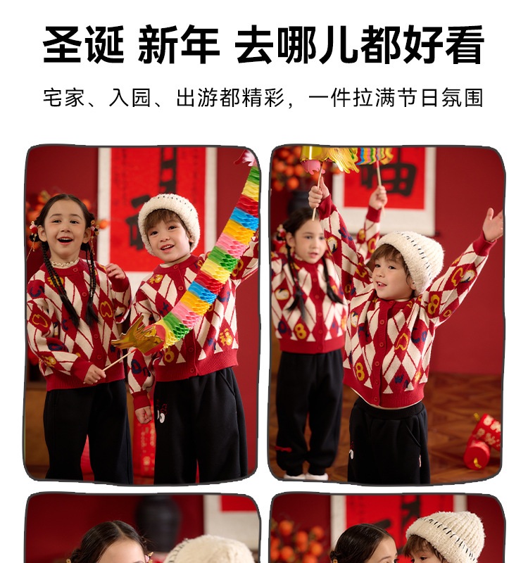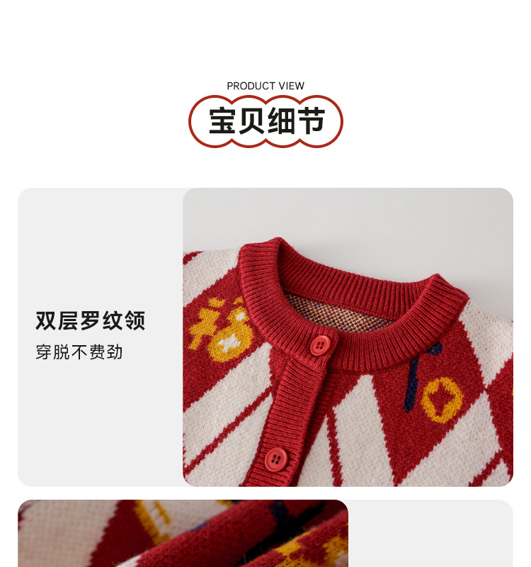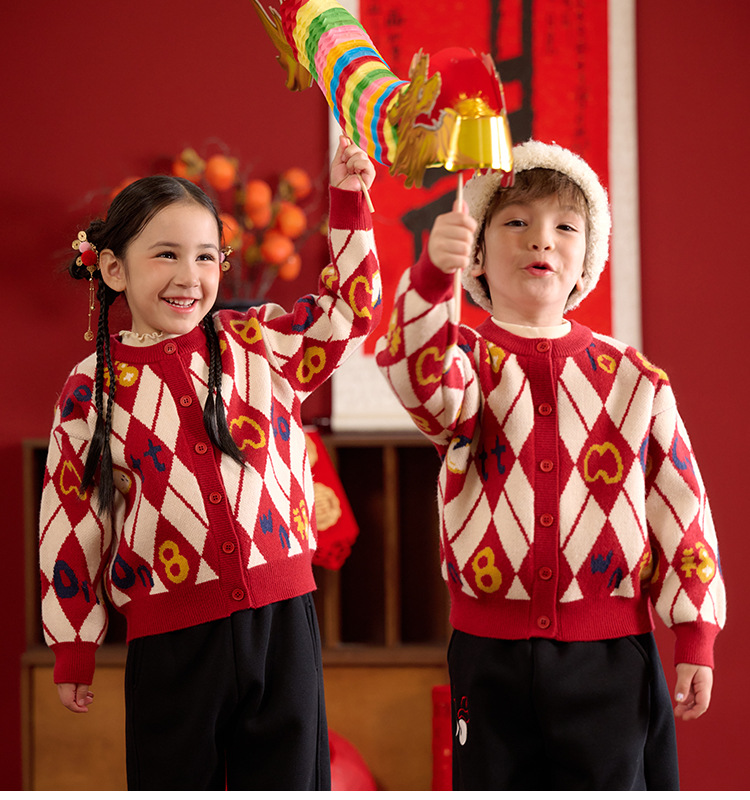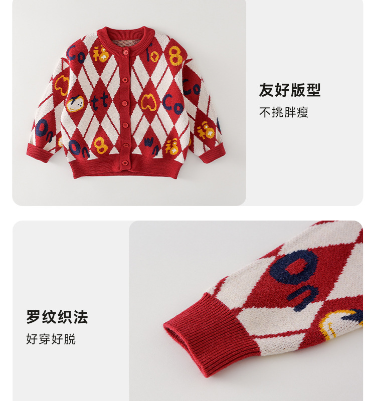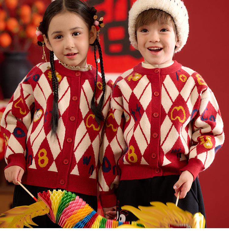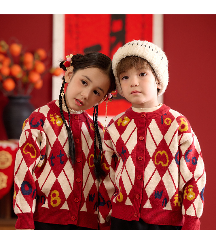 Mianhuatang 소년 카디건 스웨터 가을과 겨울 2025 새해 복 어린이 빨간 니트 코트 도매스토어 가기