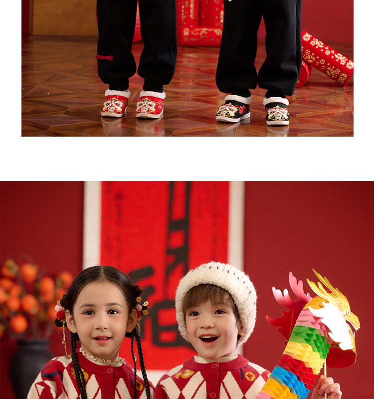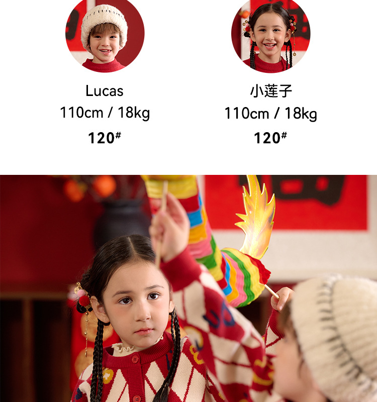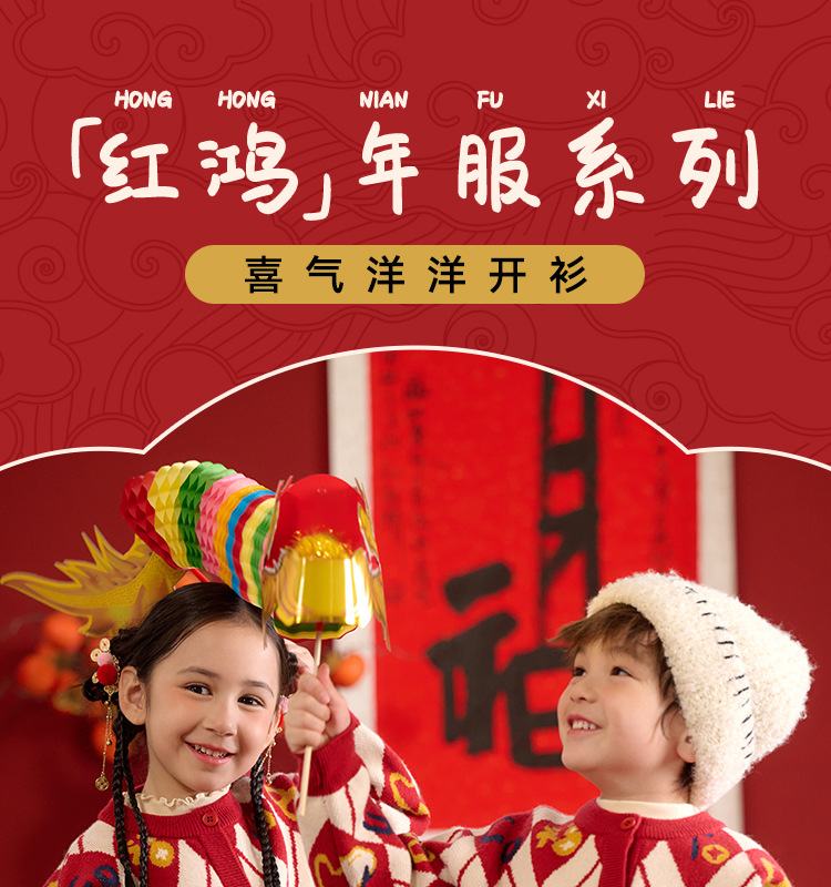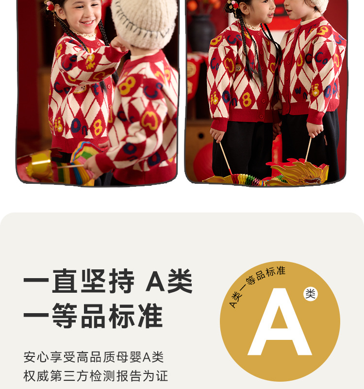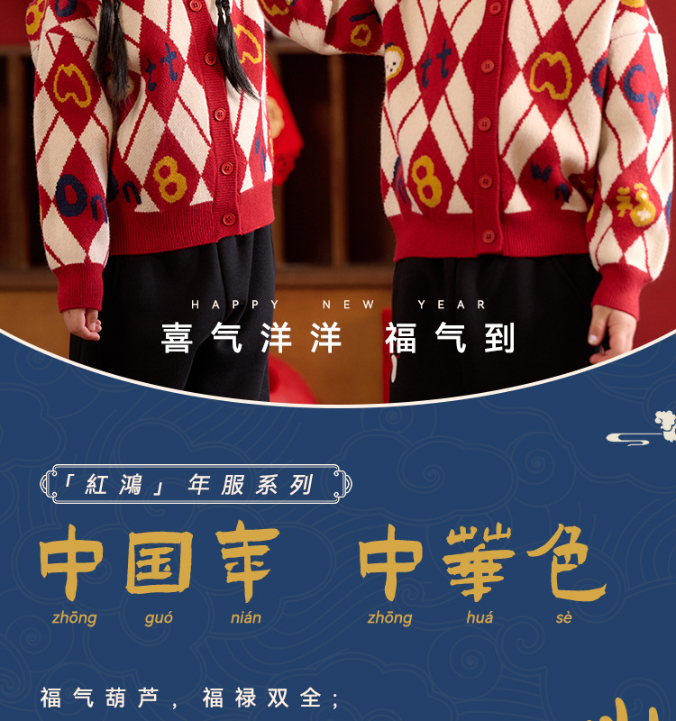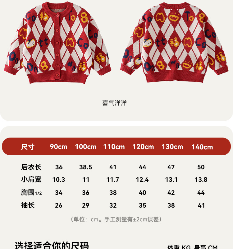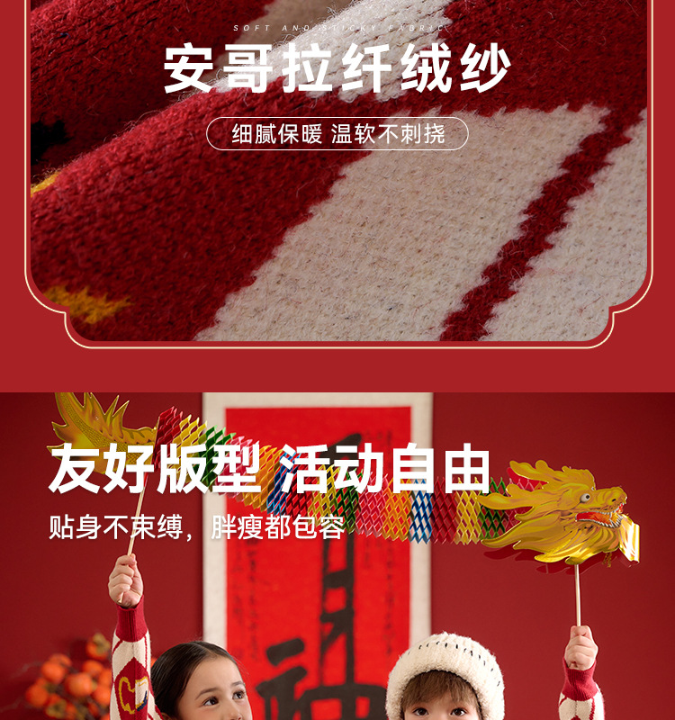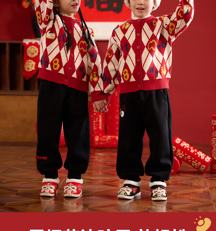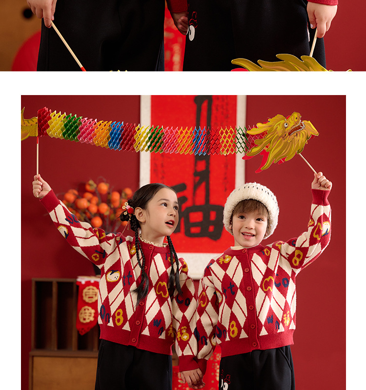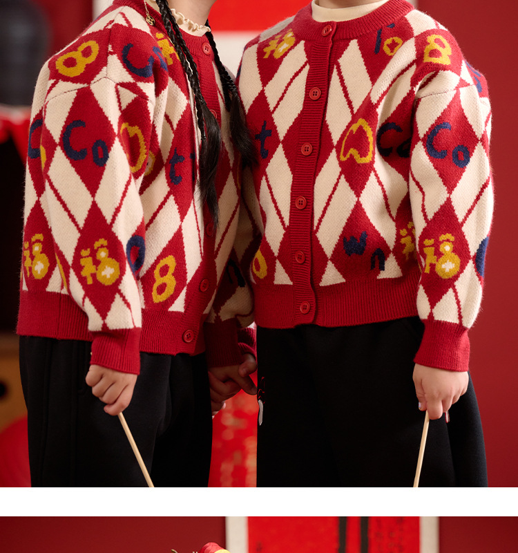 Mianhuatang 소년 카디건 스웨터 가을과 겨울 2025 새해 복 어린이 빨간 니트 코트 도매스토어 가기