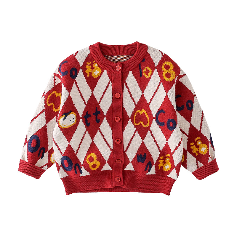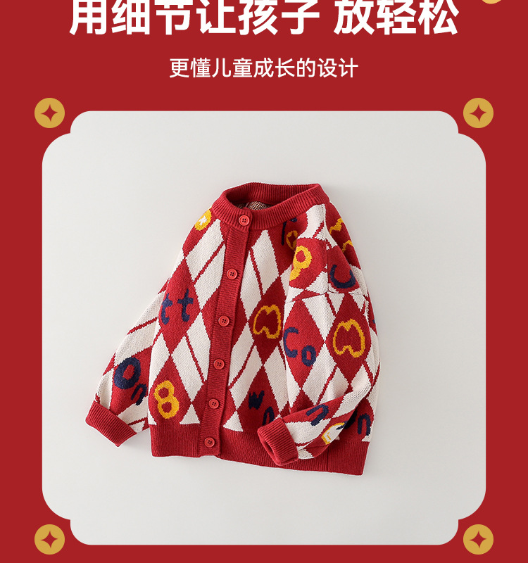 Mianhuatang 소년 카디건 스웨터 가을과 겨울 2025 새해 복 어린이 빨간 니트 코트 도매