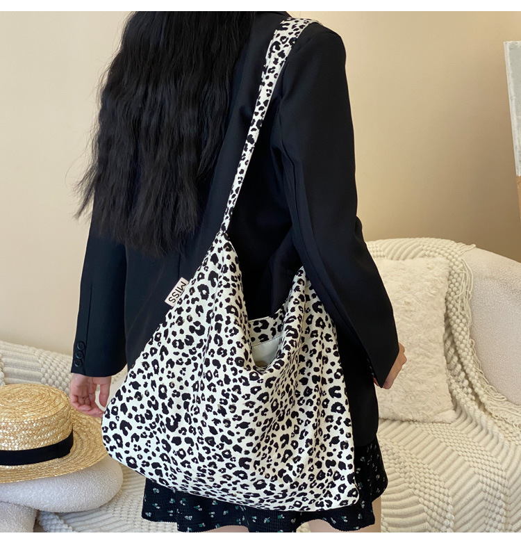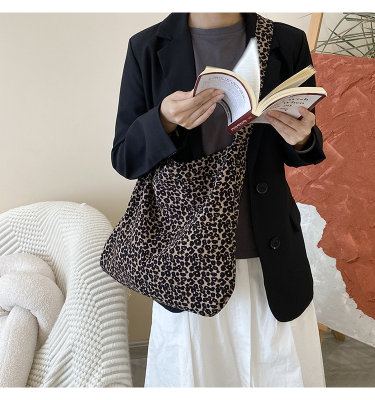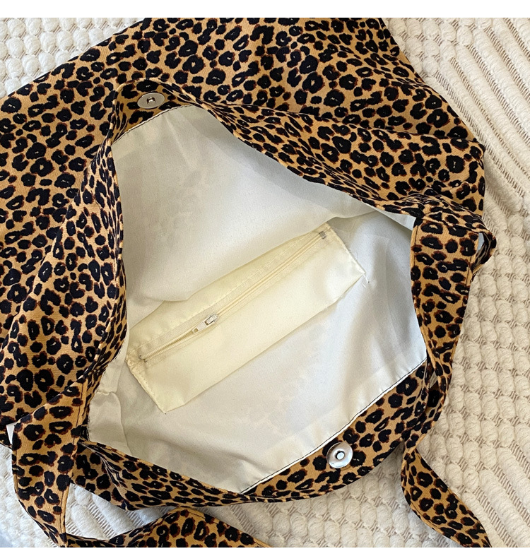 한국 레오파드 무늬 대용량 캔버스 가방 대학생 학교 가방 통근 토트 백 숄더 백 크로스 바디 핸드백스토어 가기