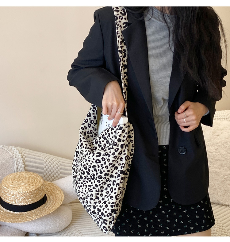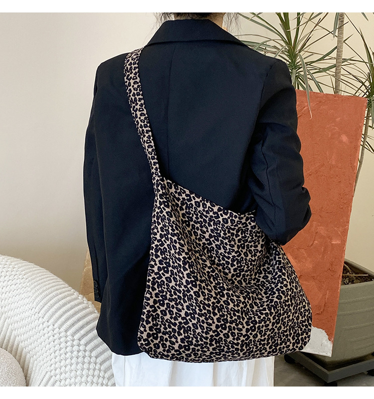 한국 레오파드 무늬 대용량 캔버스 가방 대학생 학교 가방 통근 토트 백 숄더 백 크로스 바디 핸드백
