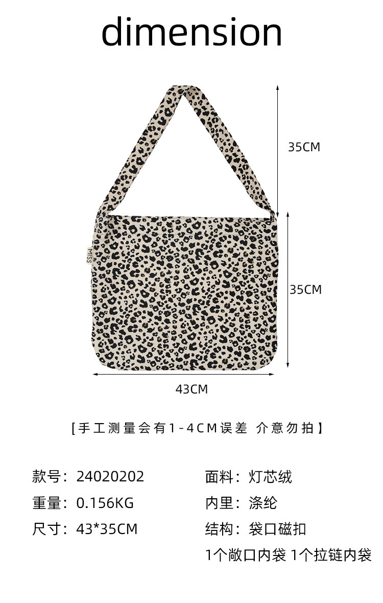 • 라이스 레오파드 프린트, 크로스바디 백, 자석 버클, 오픈 내부 포켓
