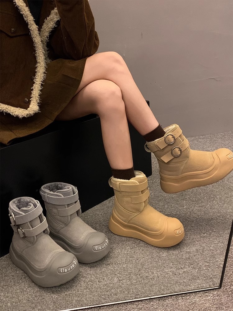 진품 가죽 두꺼운 바닥 스노우 부츠 여성의 2024 새로운 겨울 빅 헤드 코튼 부츠 기모 두꺼운 따뜻한 스노우 코튼 신발
