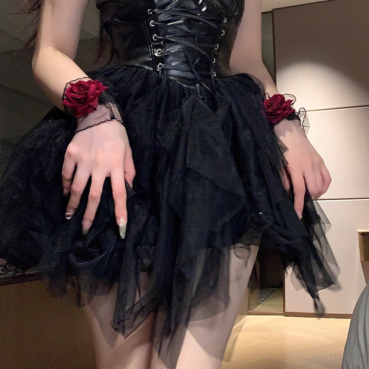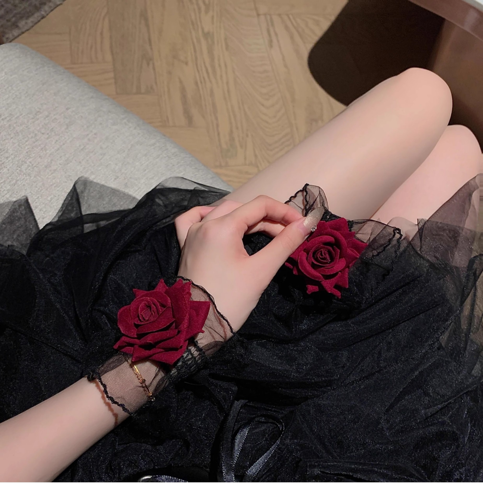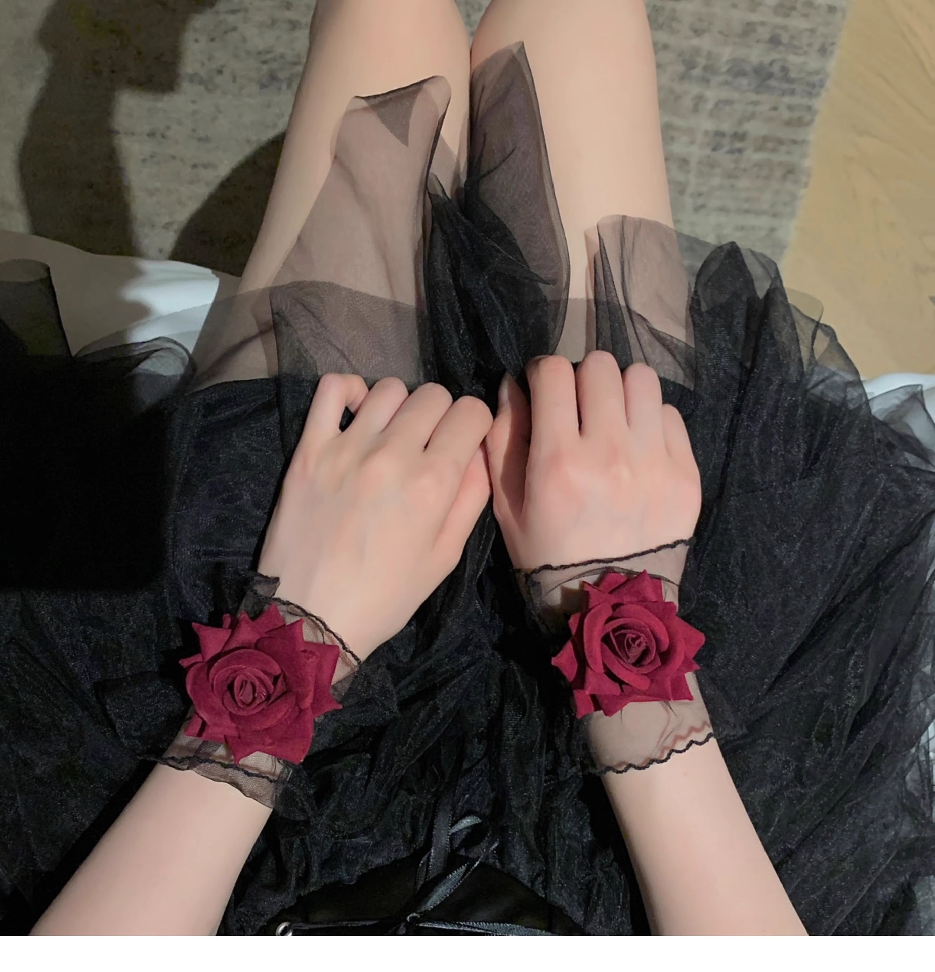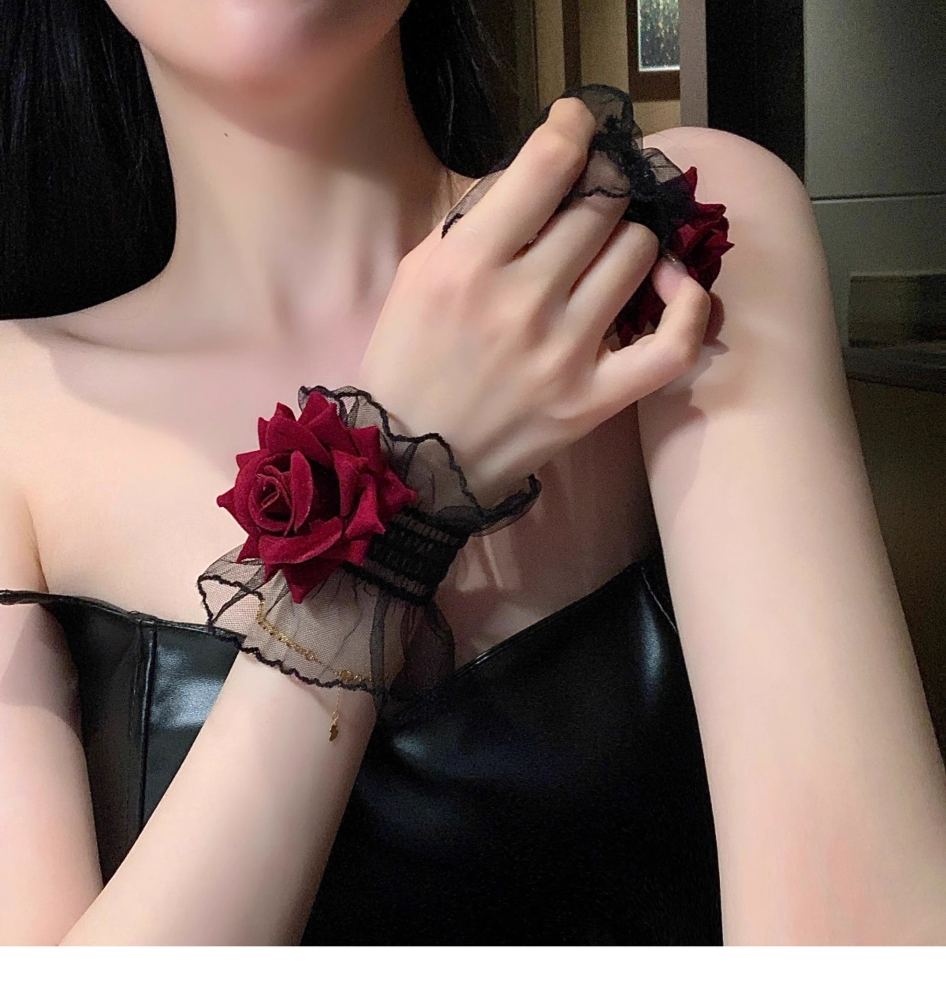 디아블로 로즈 레이스 팔찌 여성용 손목 팔찌 레드 소매 웨딩 원피스 로리타 로리타스토어 가기