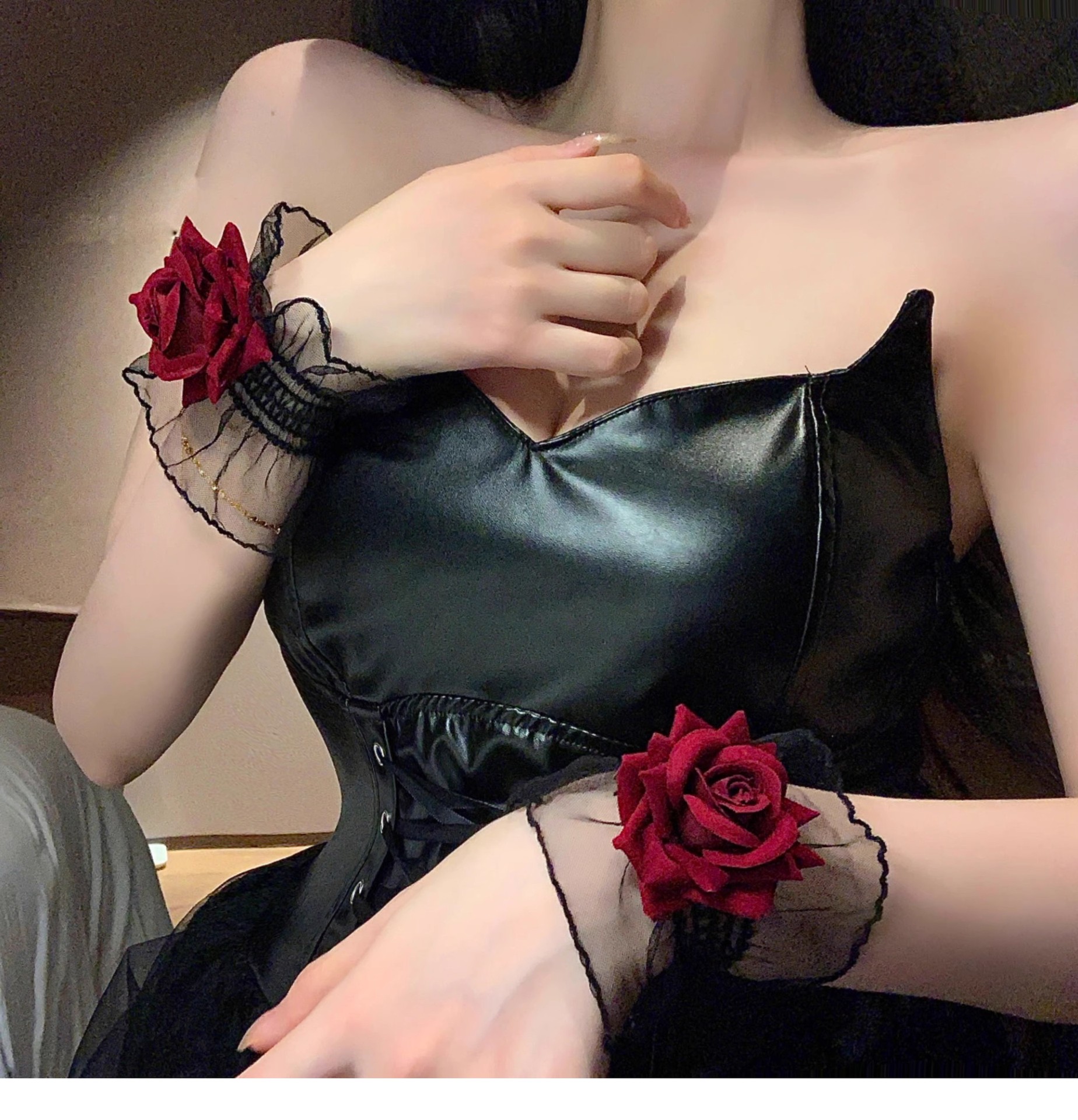 디아블로 로즈 레이스 팔찌 여성용 손목 팔찌 레드 소매 웨딩 원피스 로리타 로리타