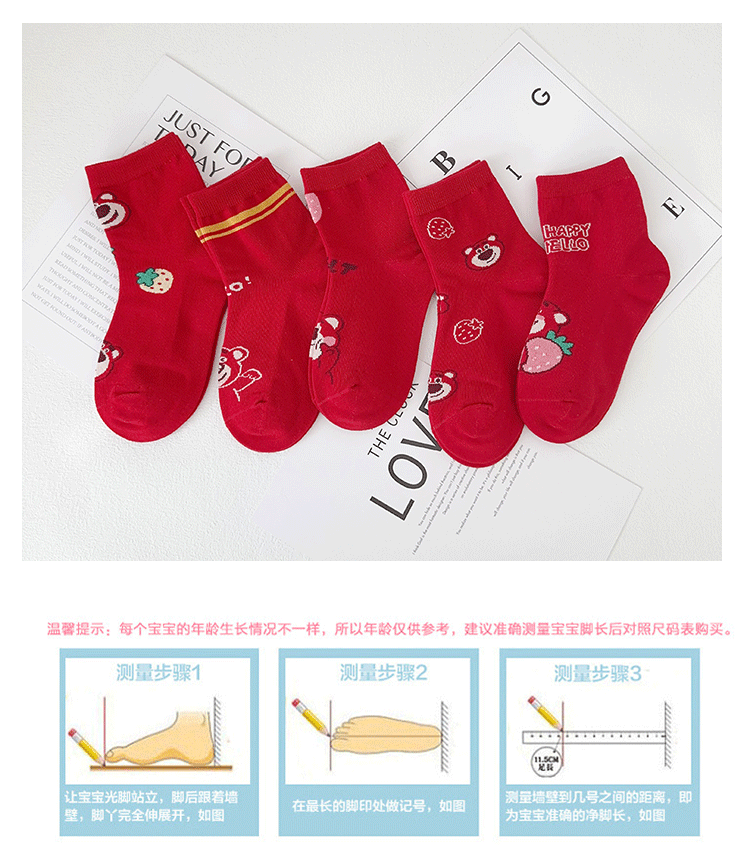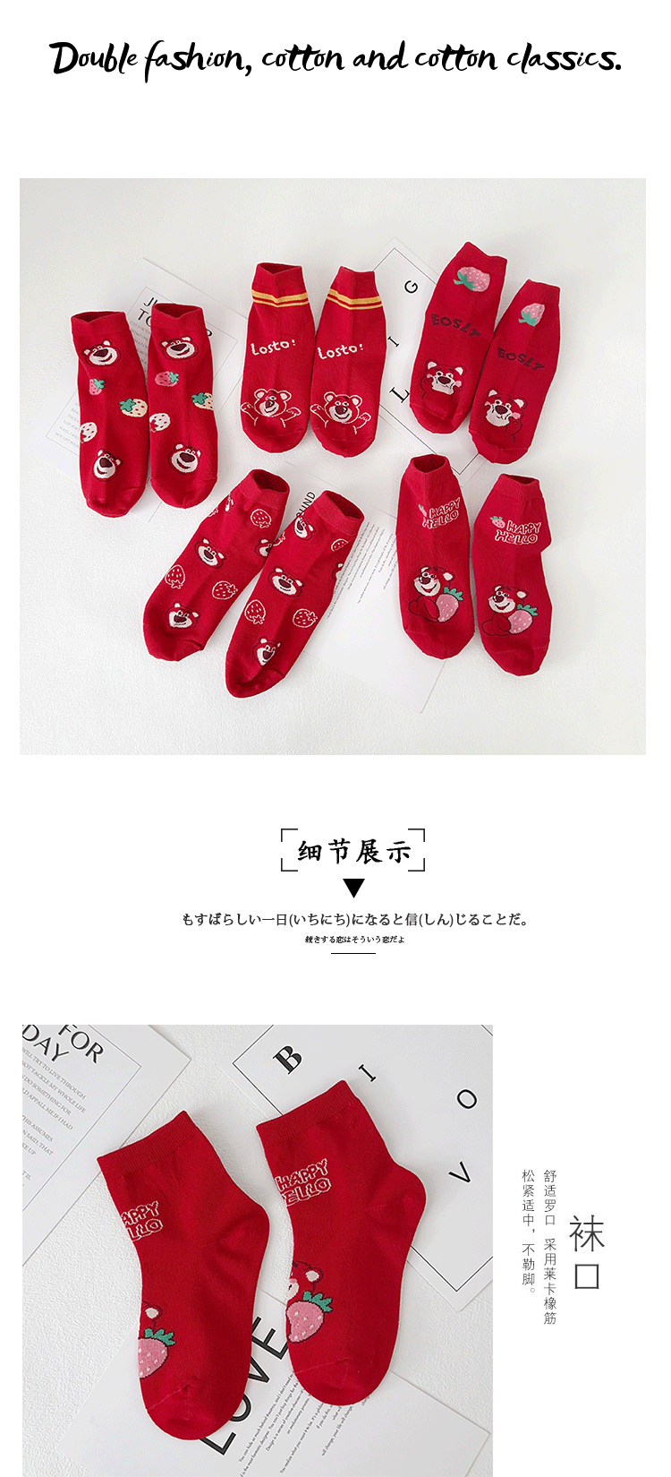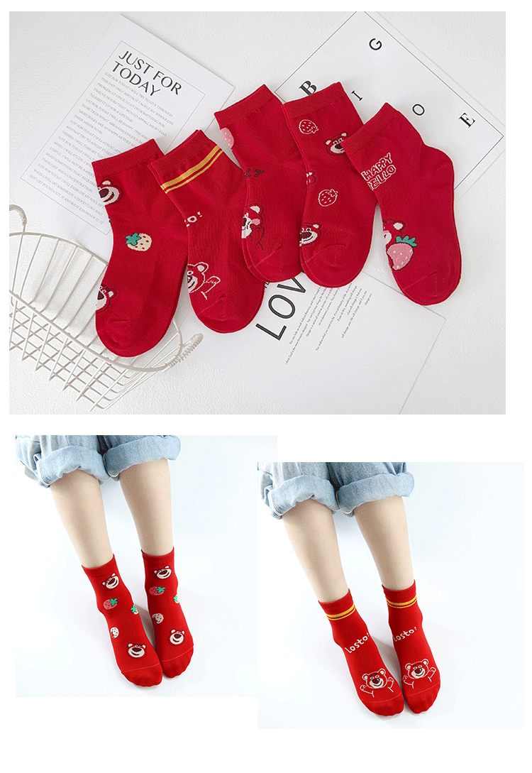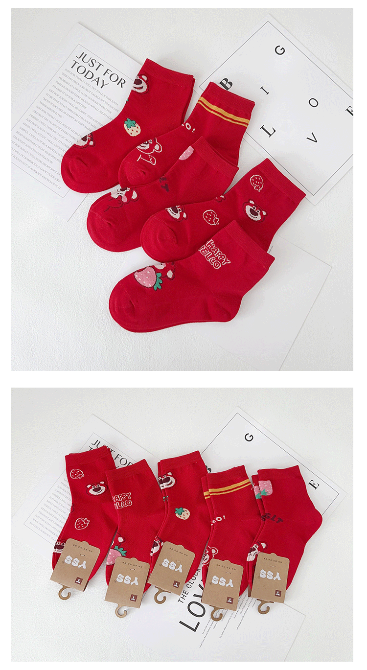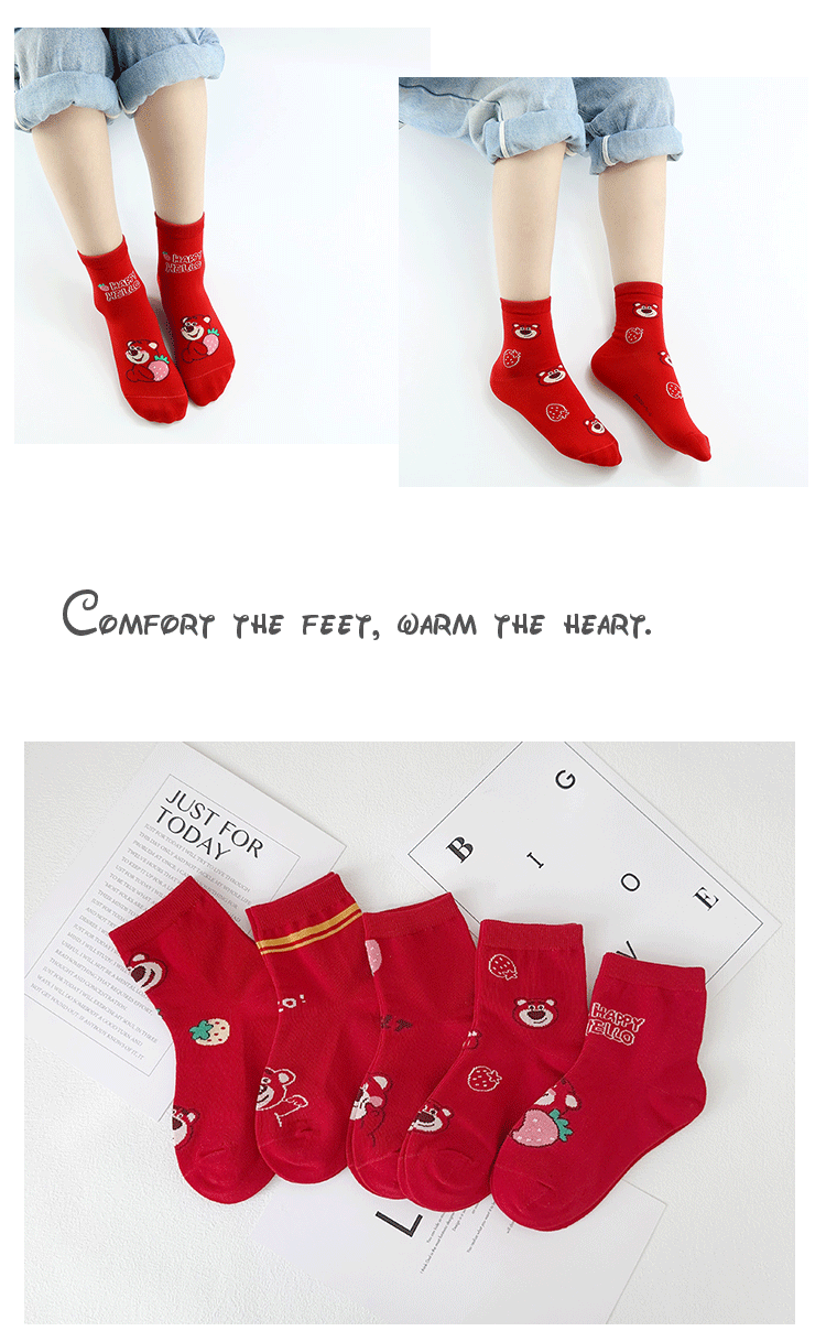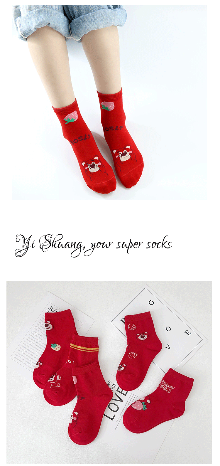 이순신 한 쌍의 어린이 양말 가을과 겨울 새로운 만화 딸기 곰 튜브 양말은면을 빗어 큰 붉은 소녀의 뼈없는 양말스토어 가기