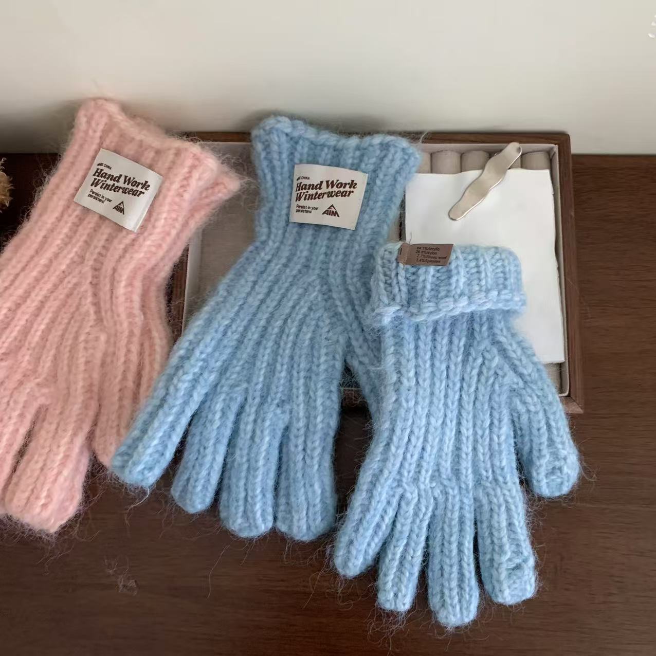 한국 주문 ~ 양모 혼합 두꺼운 조잡한 바늘 니트 장갑 여성의 겨울 귀여운 감기 방지 따뜻한 장갑 터치 스크린