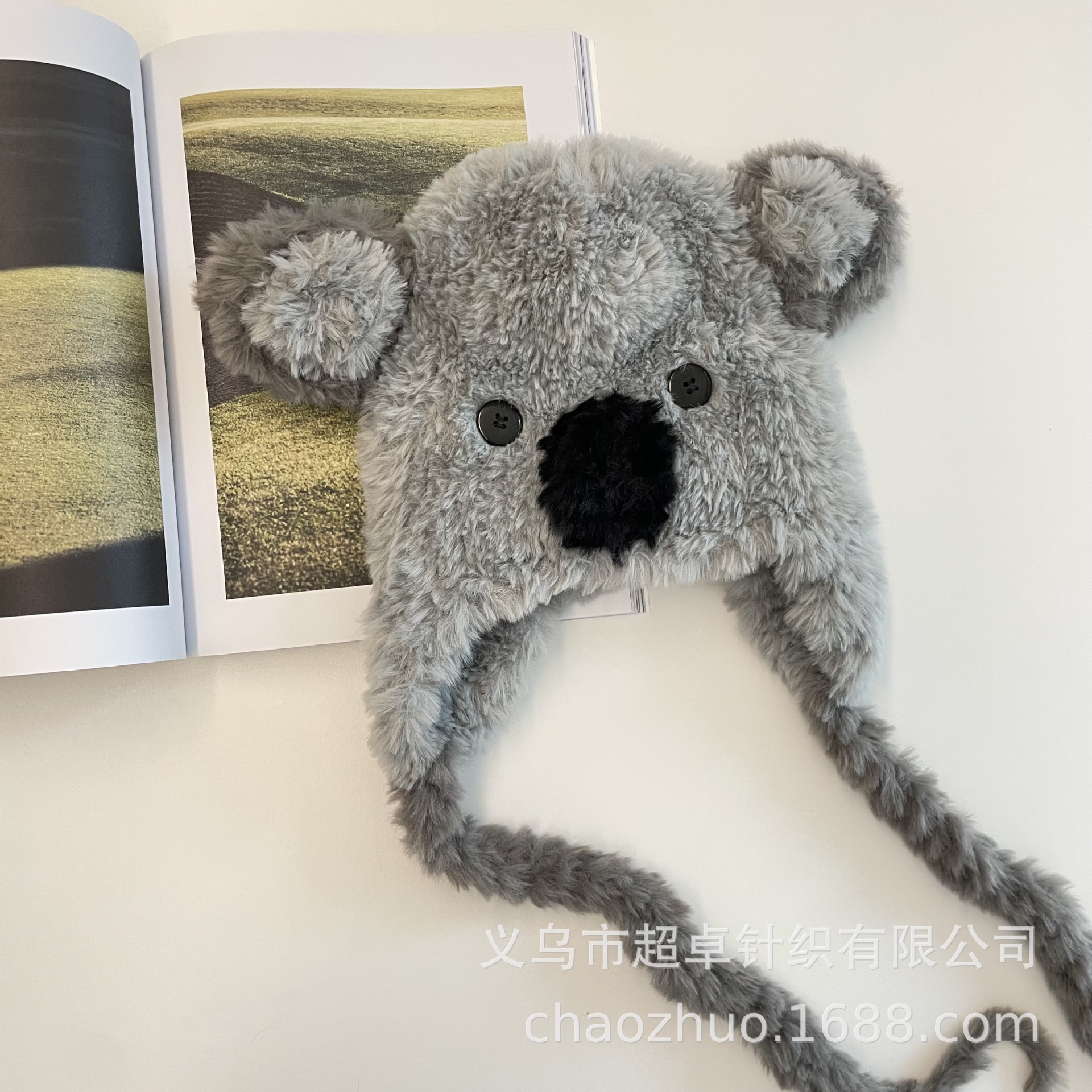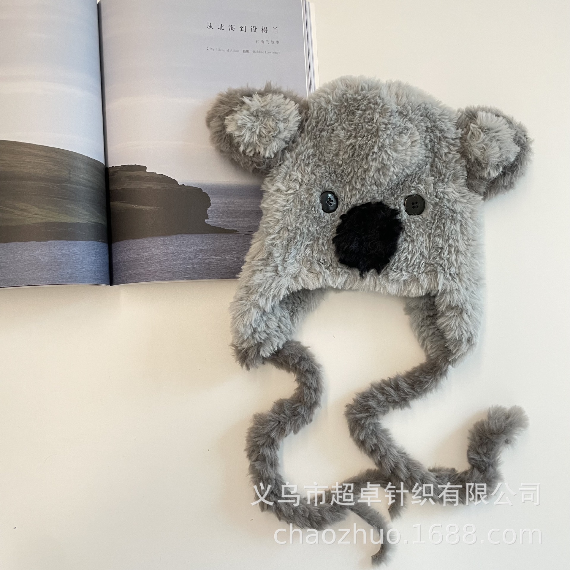 빈티지 귀여운 틈새 어린이 수제 울 코알라 성인 소프트 왁스 편안한 귀 보호 양모 모자 어린이 모자스토어 가기