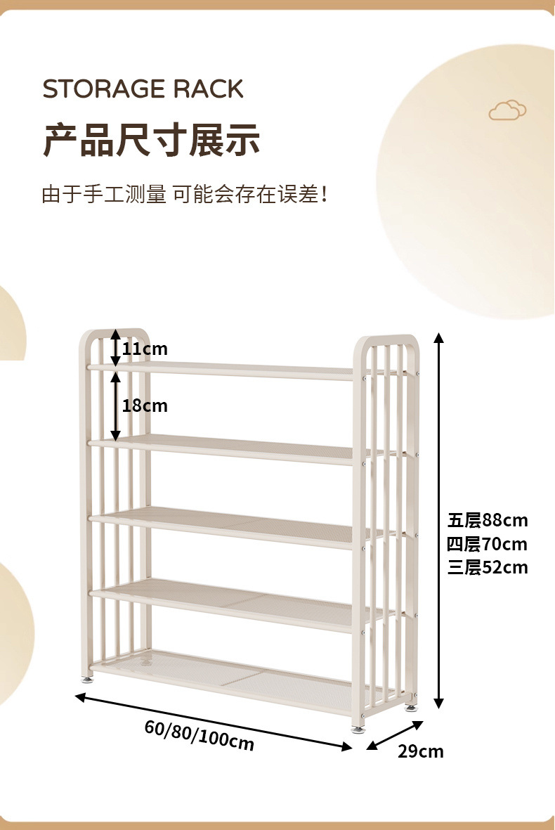 • 5겹, 길이 80cm, 높이 88cm - 금색 "업그레이드된 조밀한 메쉬"에는 약 20켤레의 신발이 들어 있습니다.