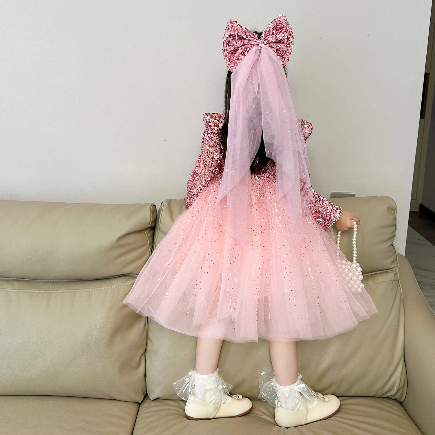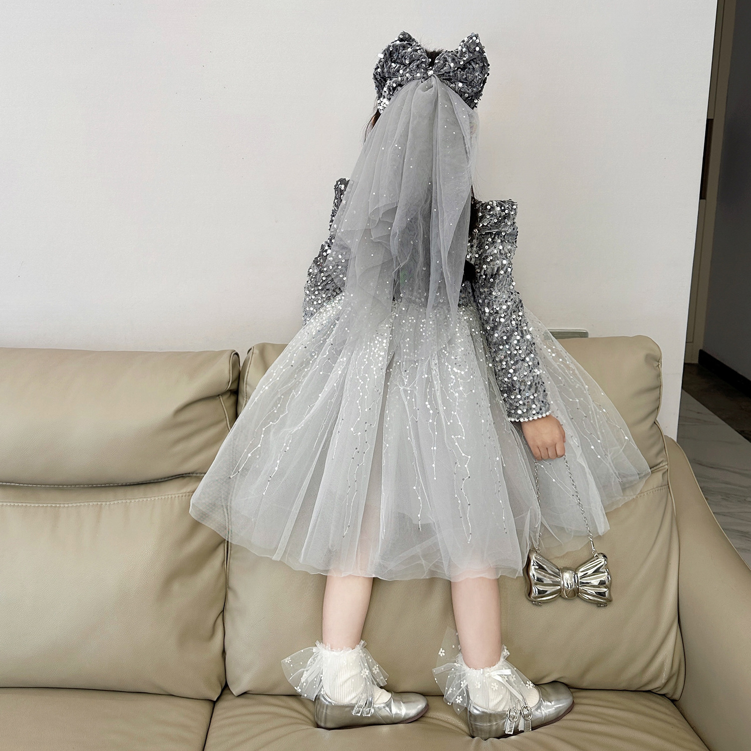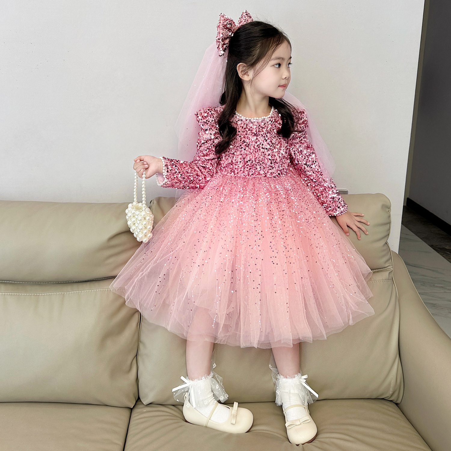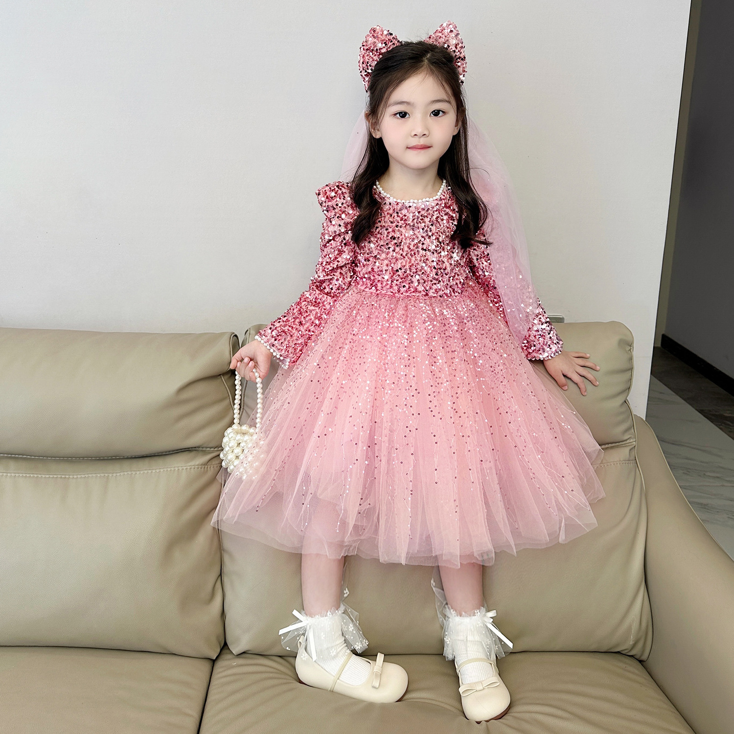 여아 벨벳 스팽글 망사 드레스 2025 가을 겨울 신상 아동용 플러스 벨벳 반짝이 공주 드레스스토어 가기