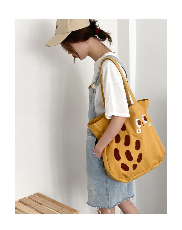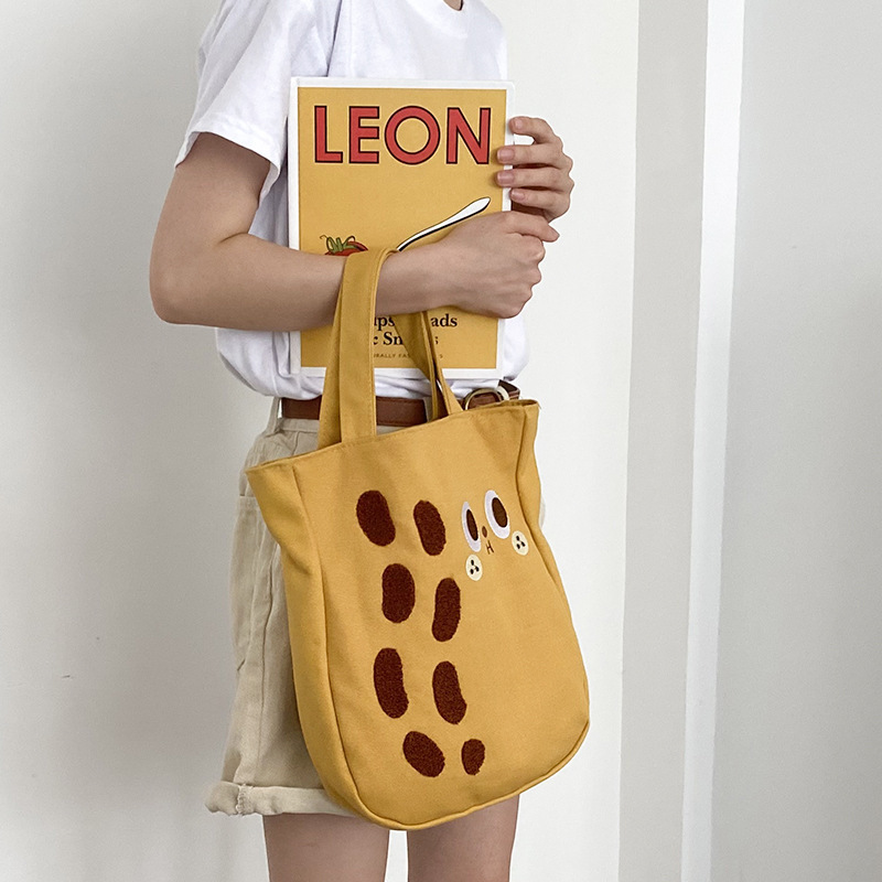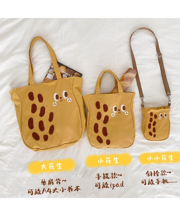 2024 새로운 만화 캔버스 가방 대용량 어깨 가방 핸드 백 여성용 Ins 자수 땅콩 가방