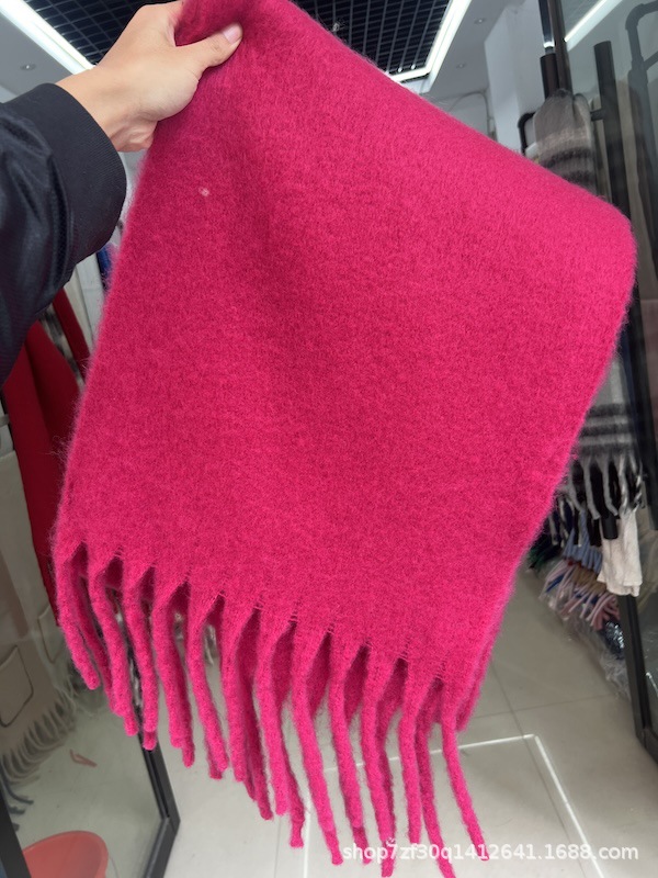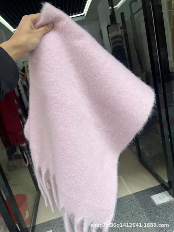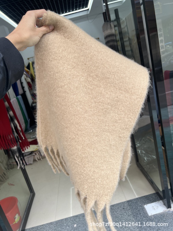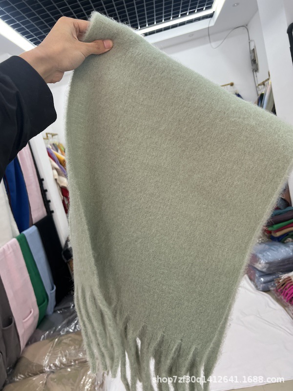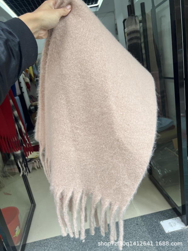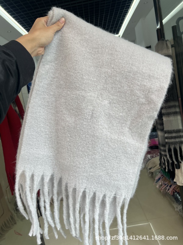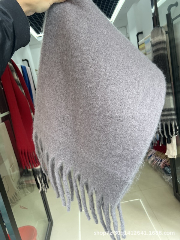 두꺼운 대형 다용도 모헤어 단색 심플 스카프, 따뜻하고 세련된 유럽 및 미국 스타일, 인기 상품