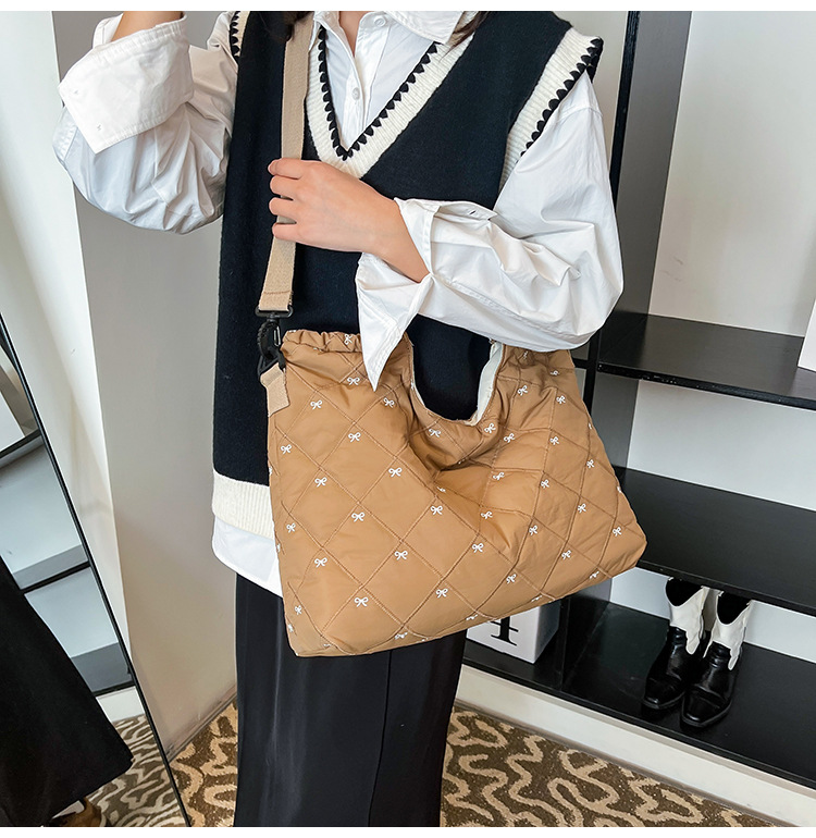 대학생 클래스 토트 백 여성의 새로운 대용량 통근 핸드백 가을과 겨울 자수 마름모꼴 캐주얼 숄더 백