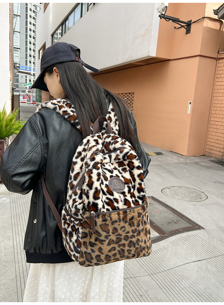 가을과 겨울 대용량 봉제 백팩 여성의 2024 새로운 복고풍 레오파드 무늬 올 매치 학생 스쿨백 간단한 핸드백스토어 가기