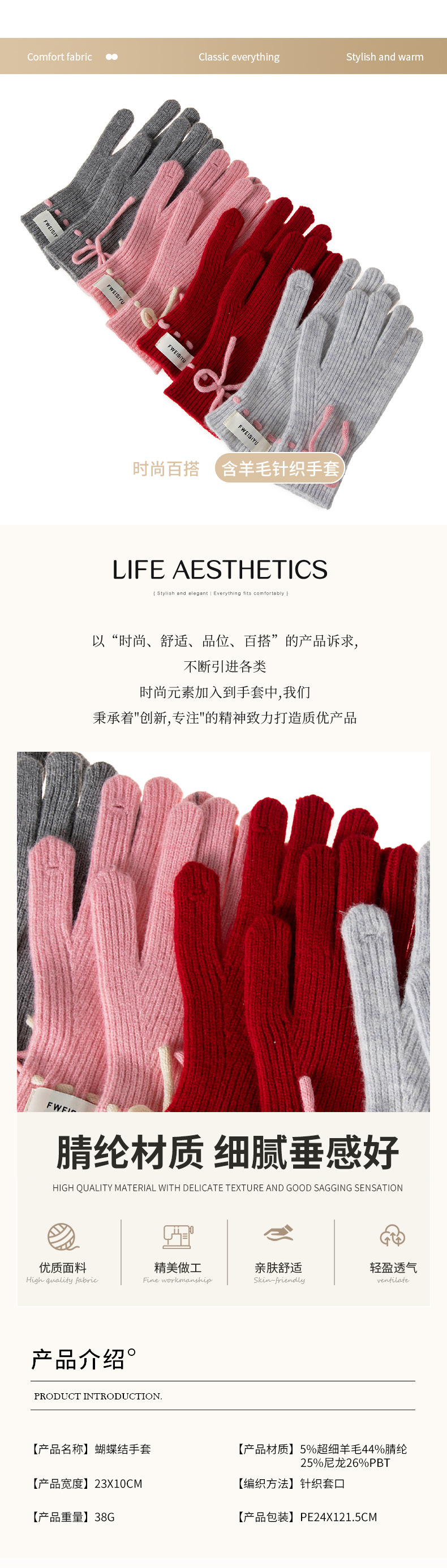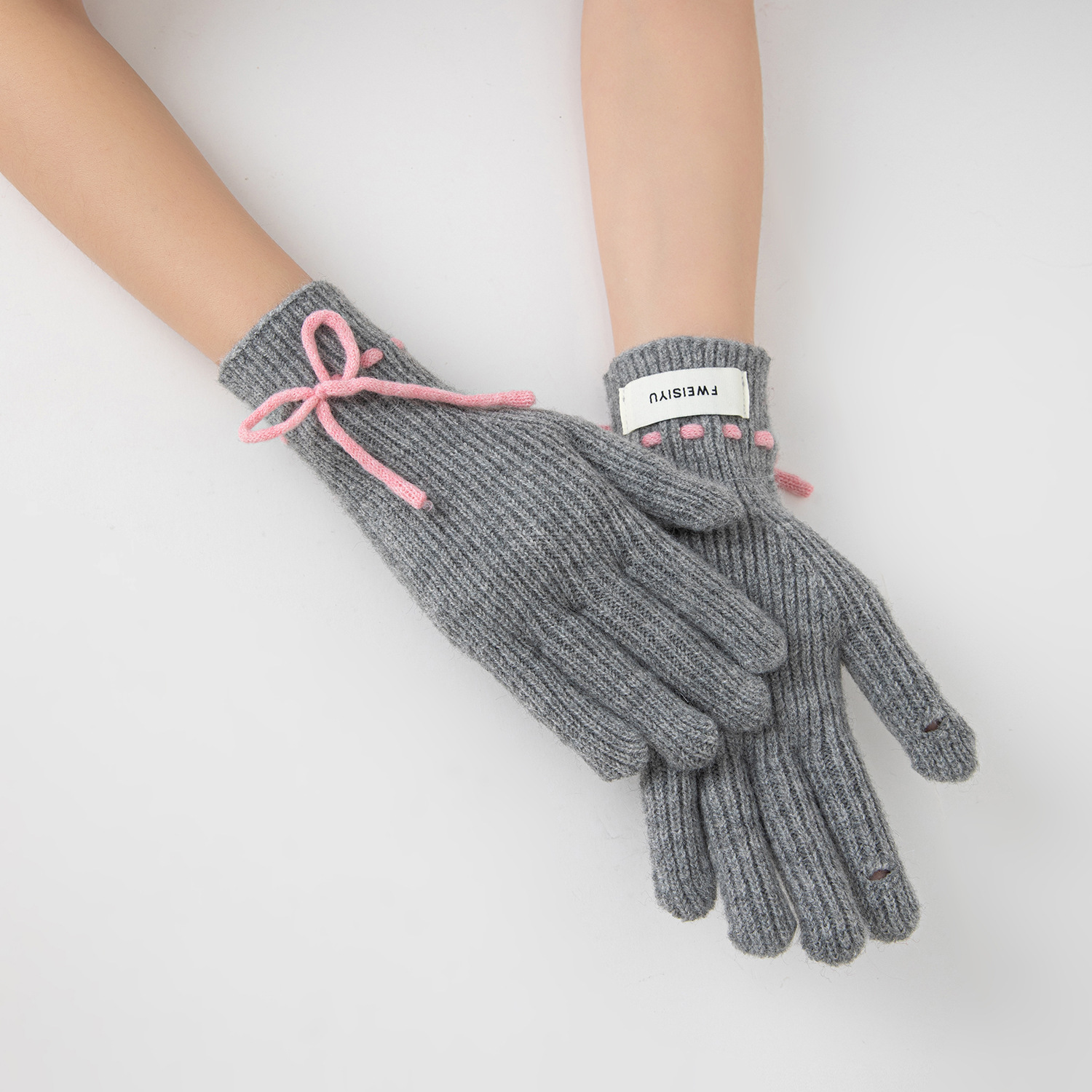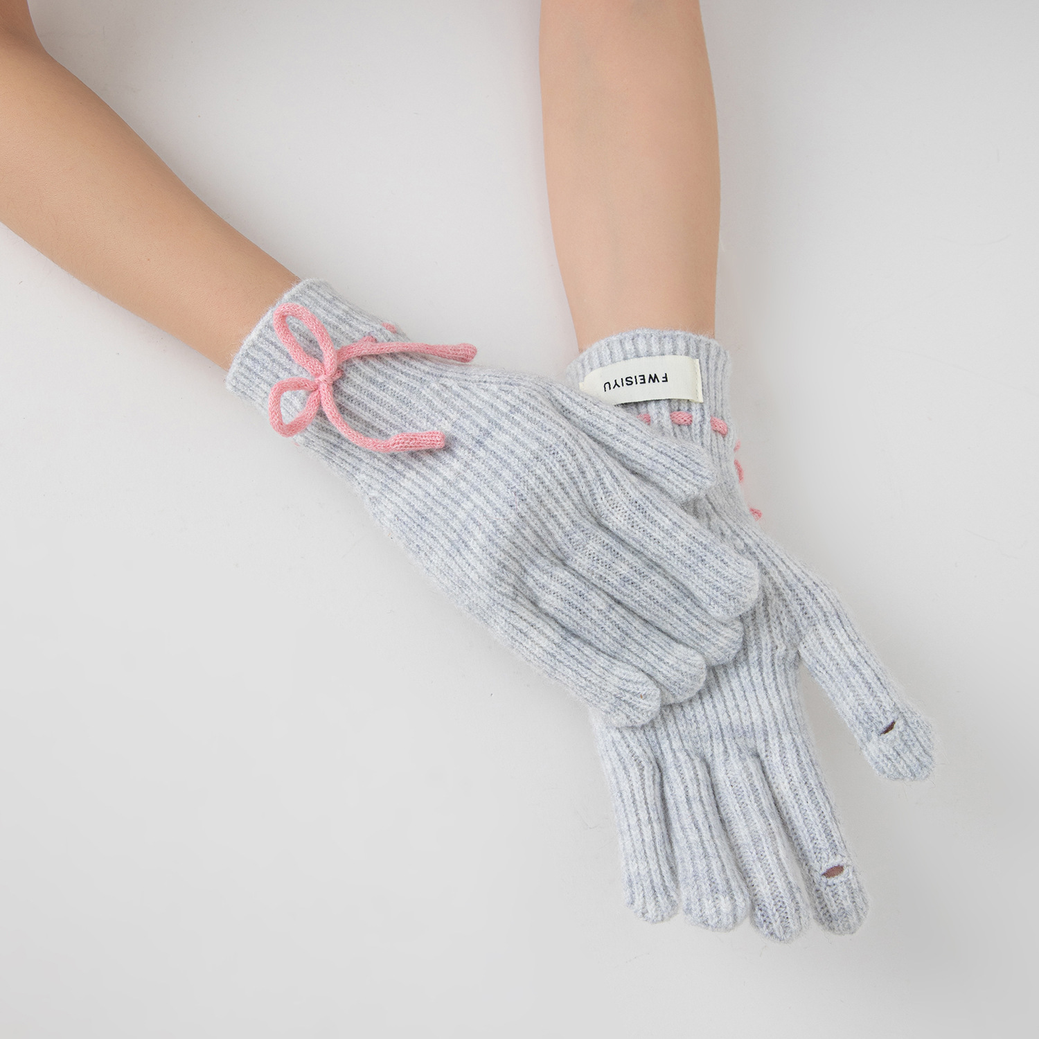 새로운 가을과 겨울 귀여운 단색 활 니트 장갑 한국식 따뜻한 엑시 그 손가락 분할 양모 니트 장갑