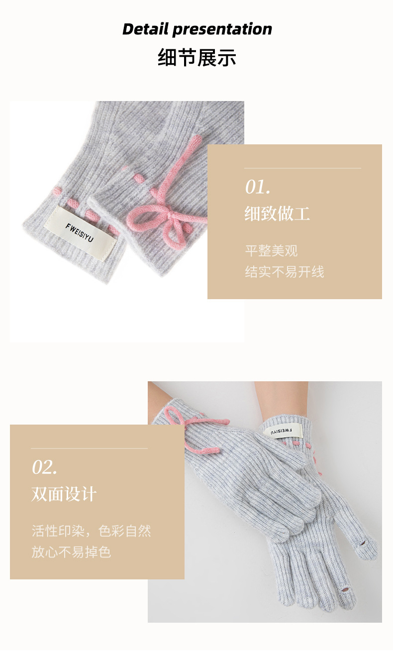 새로운 가을과 겨울 귀여운 단색 활 니트 장갑 한국식 따뜻한 엑시 그 손가락 분할 양모 니트 장갑스토어 가기