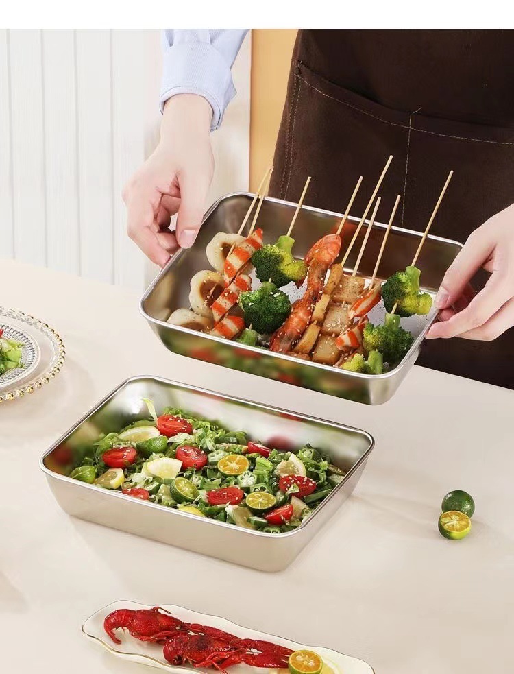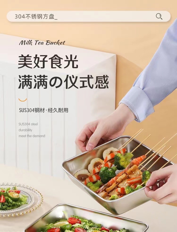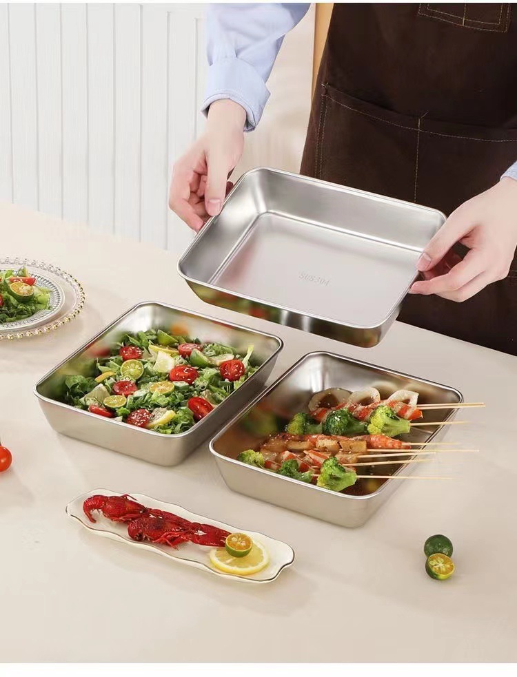두꺼운 스테인레스 스틸 스퀘어 플레이트 스테인레스 스틸 트레이 접시 바베큐 플레이트 쌀 플레이트 철판 직사각형 타월 플레이트스토어 가기
