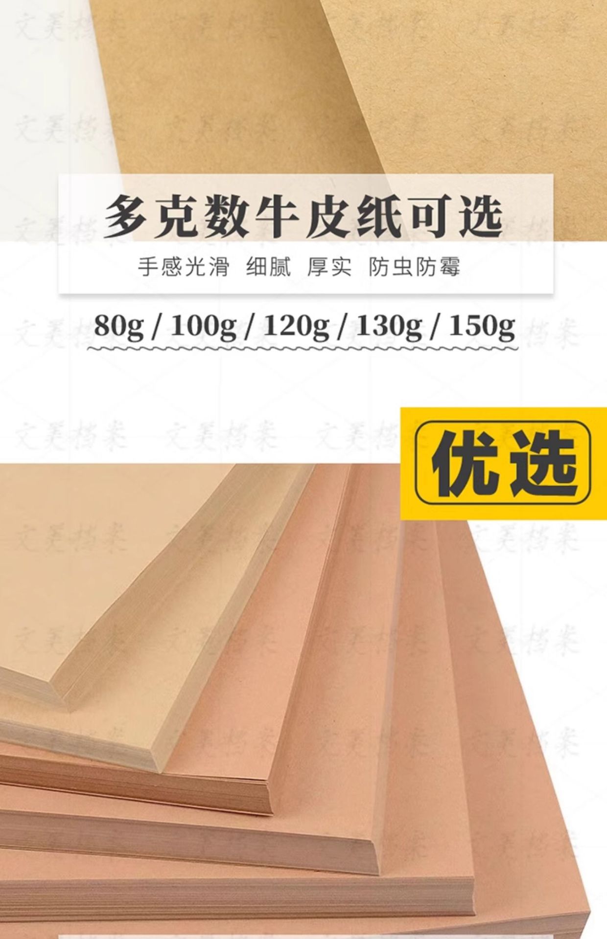 100 장의 노란색 빈 a4 크래프트 종이 파일 커버 인쇄 용지 150g 두꺼운 크래프트 종이 목재 펄프 산이없는 종이 a스토어 가기