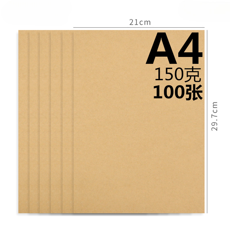 100 장의 노란색 빈 a4 크래프트 종이 파일 커버 인쇄 용지 150g 두꺼운 크래프트 종이 목재 펄프 산이없는 종이 a