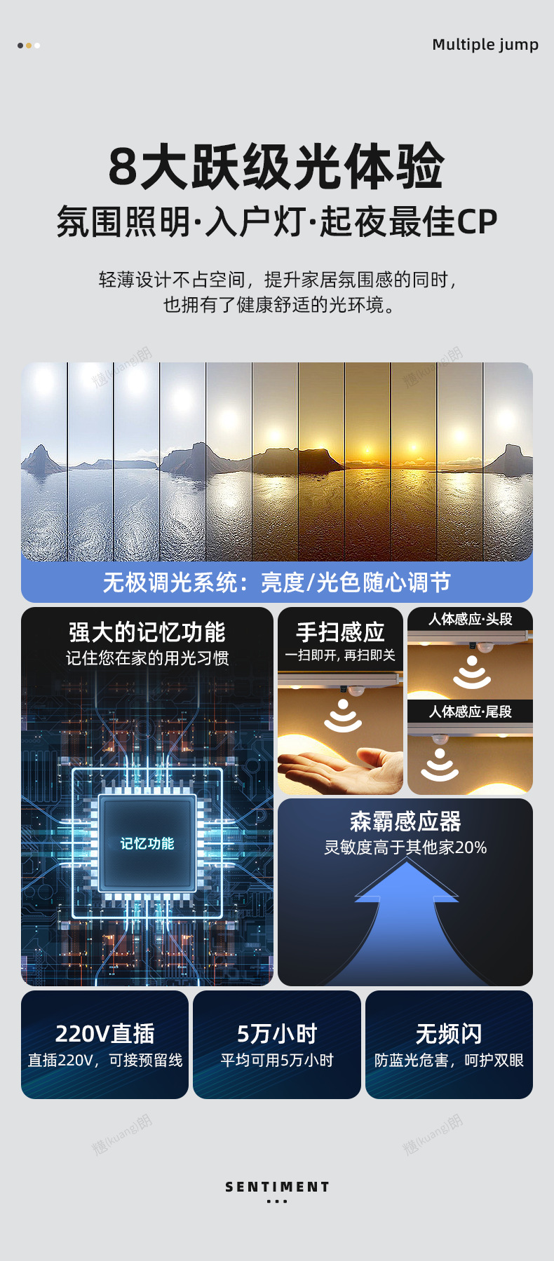 220V 플러그인 힐라이트, 인체 감지, 손 스윕, 색상 및 밝기 조절 가능, 고양이 눈 조명, 현관 캐비닛 조명, 야간 조명