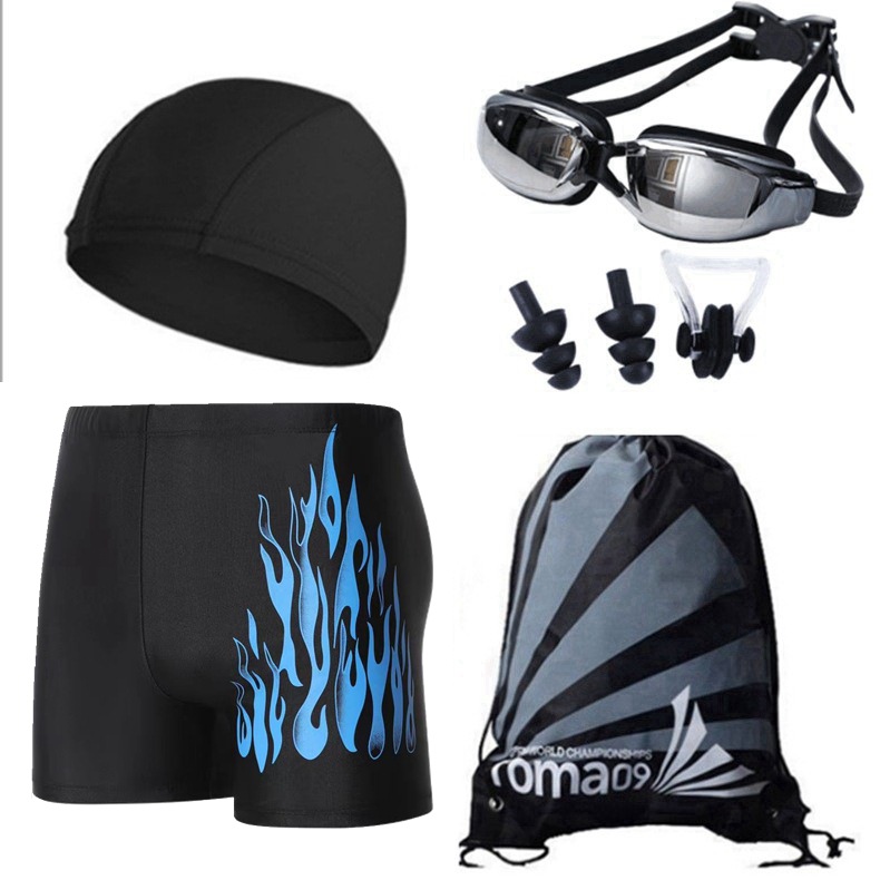 수영 모자로 세트 남자 수영 트렁크 화염 부드러운 편안한 통기성 플러스 사이즈 수영장 온천 수영 트렁크 세트