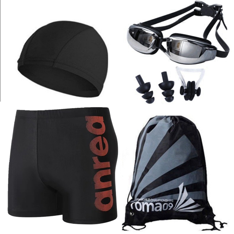 수영 모자로 세트 남자 수영 트렁크 화염 부드러운 편안한 통기성 플러스 사이즈 수영장 온천 수영 트렁크 세트스토어 가기