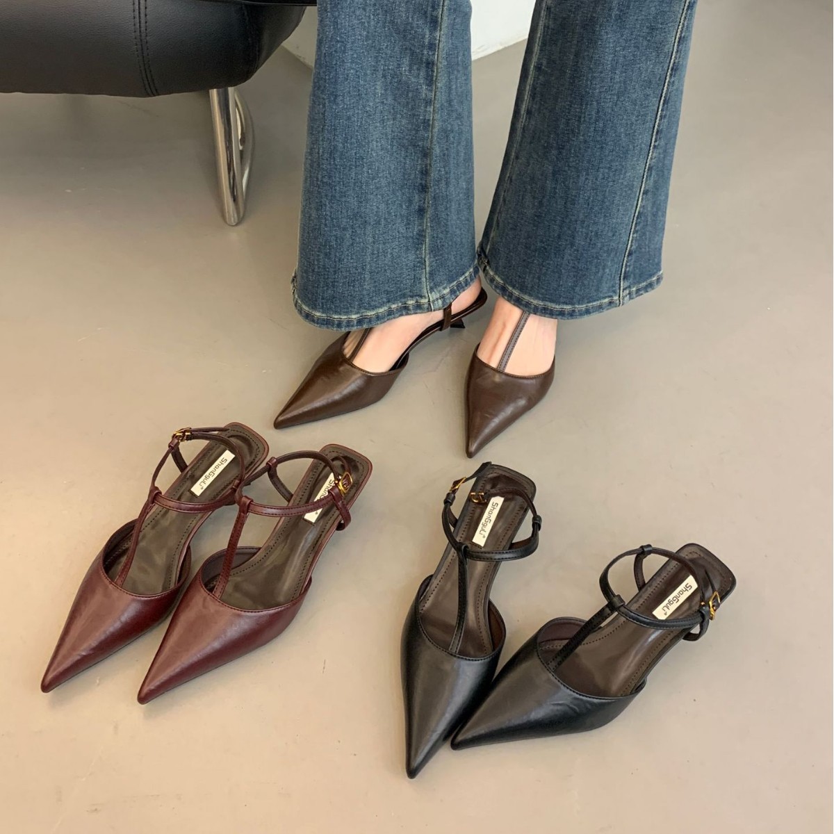 니치 샌들 여성 여름 외부 착용 새로운 프랑스 스타일 저녁 요정 스타일 품질 원피스 뾰족한 신발