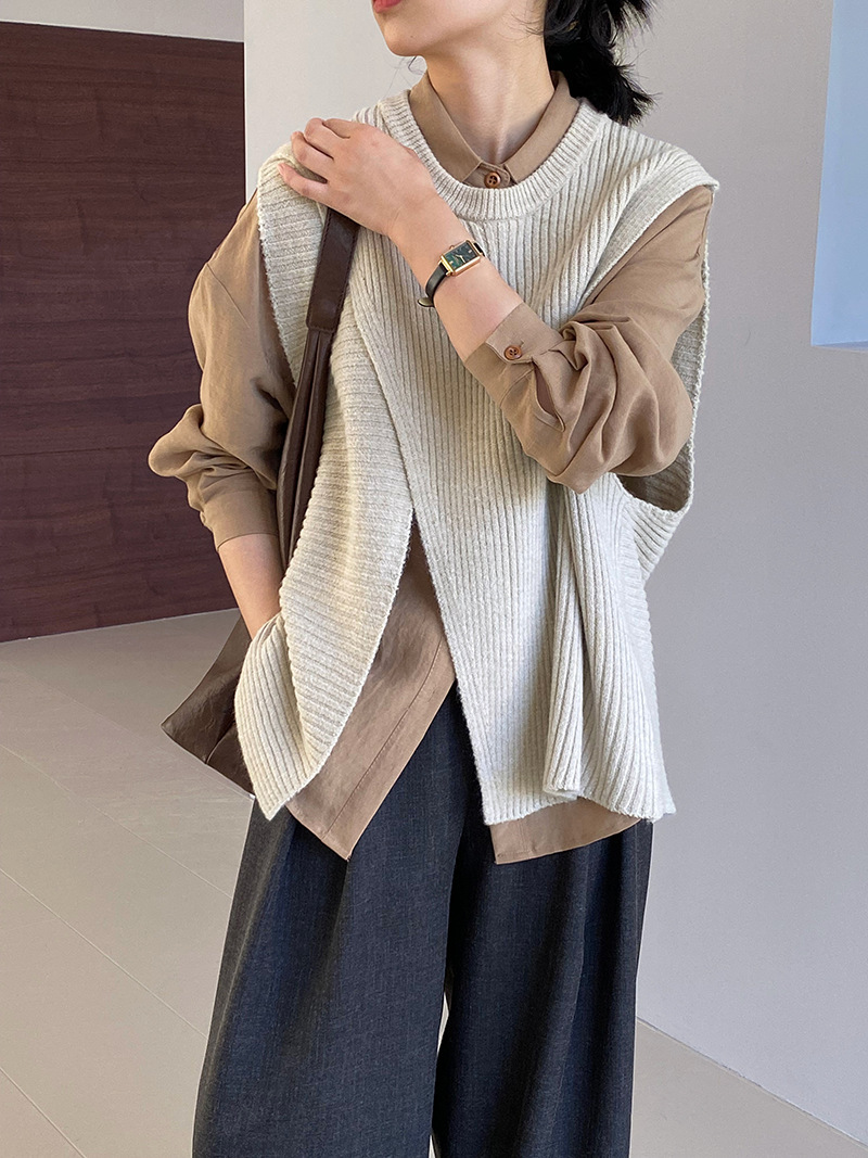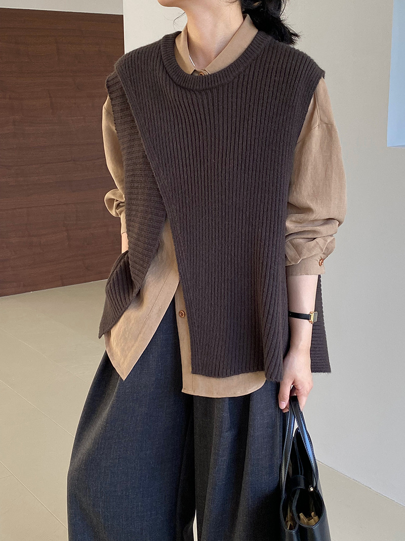 일본 빈티지 블랙 민소매 조끼 니트 조끼 여성 봄과 가을 스택 불규칙한 분할 짧은 조끼 탑스토어 가기
