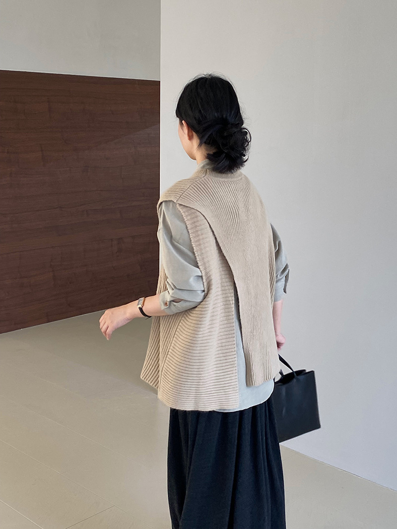일본 빈티지 블랙 민소매 조끼 니트 조끼 여성 봄과 가을 스택 불규칙한 분할 짧은 조끼 탑