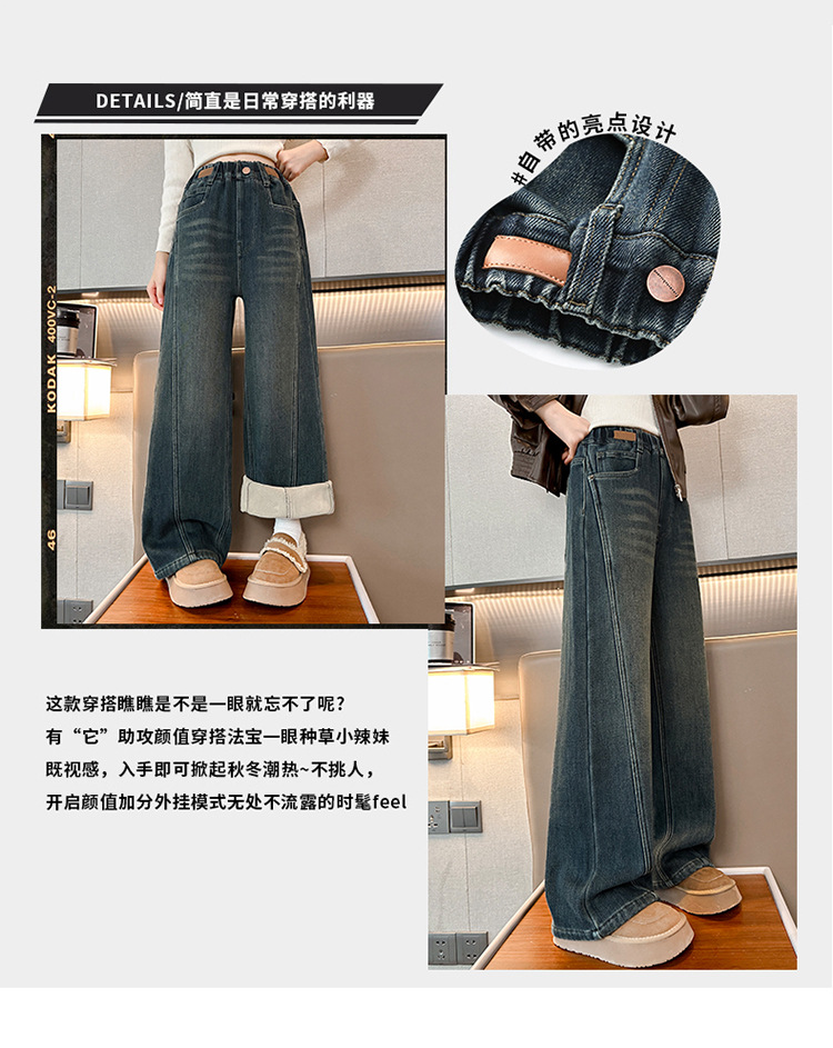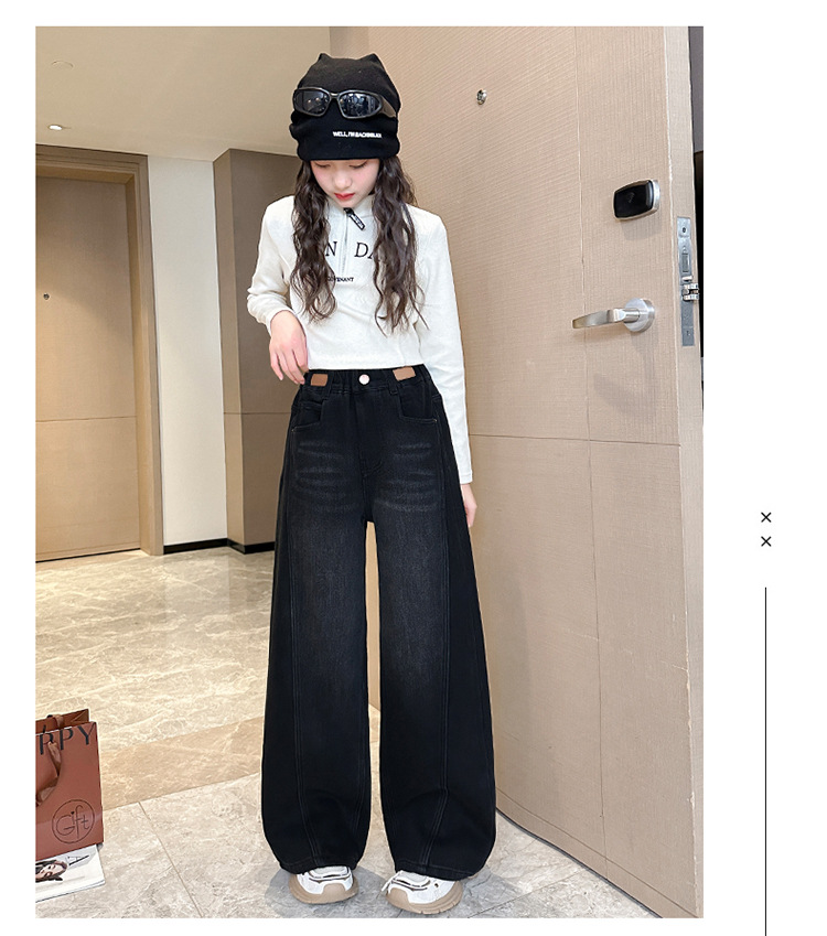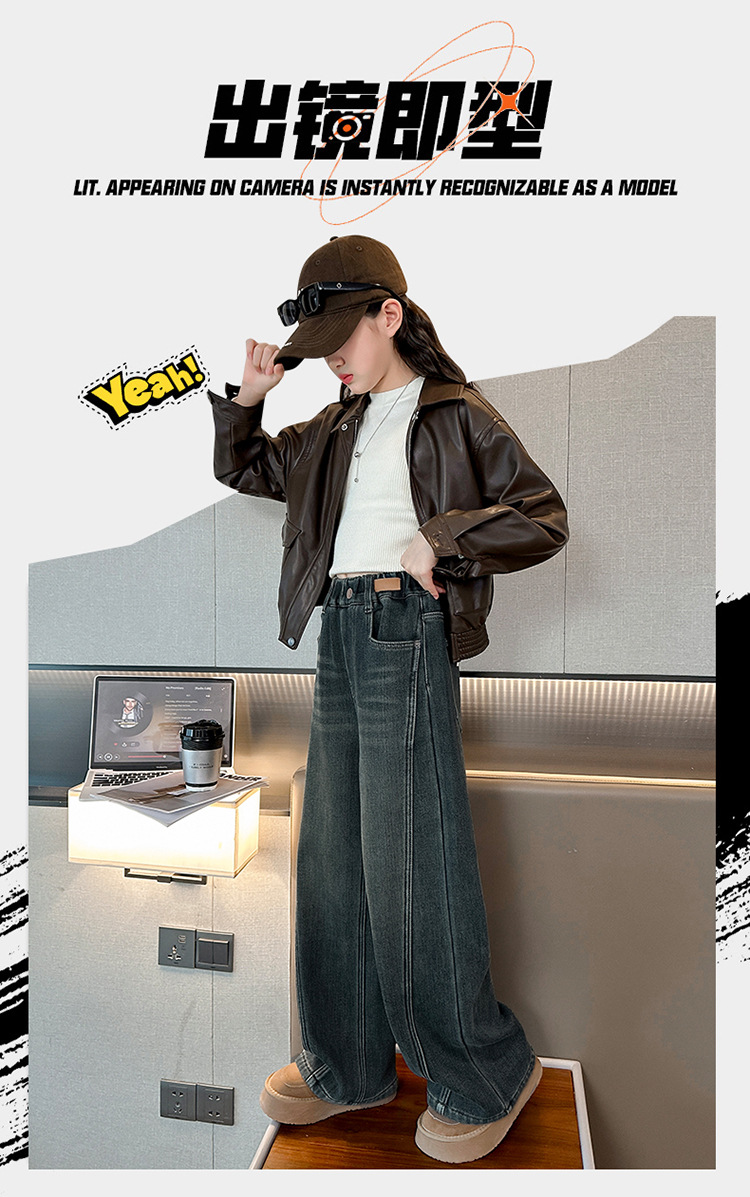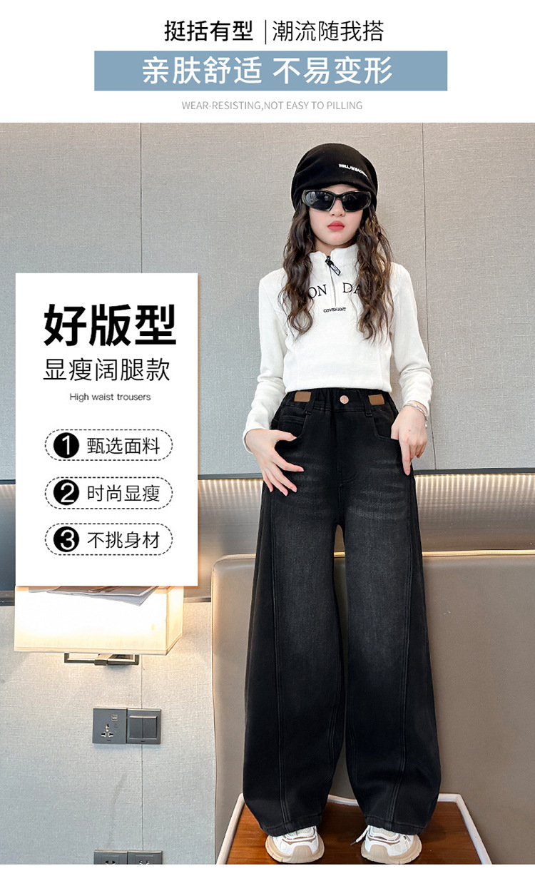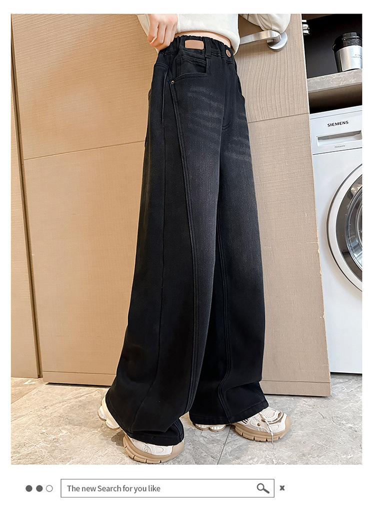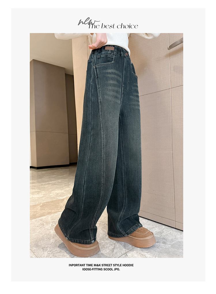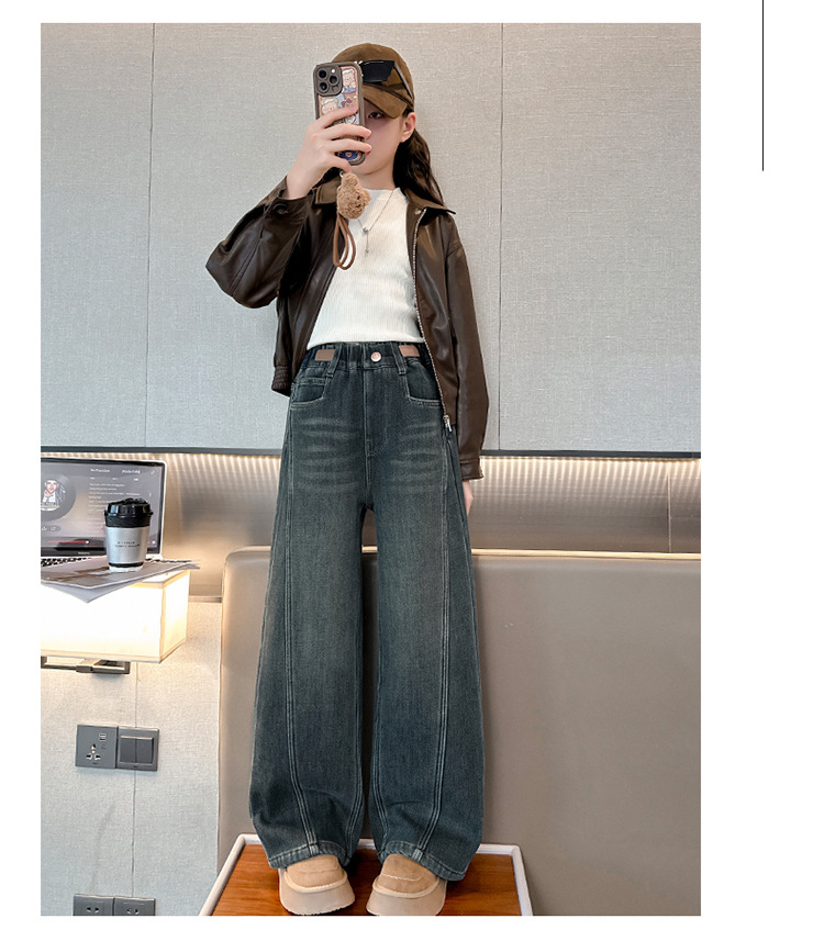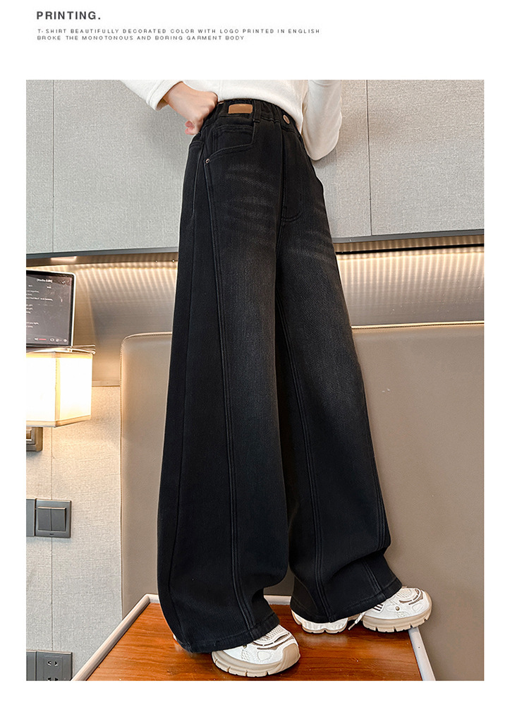 소녀 기모 청바지 2024 새로운 어린이 겨울 스트레이트 와이드 레그 바지 두꺼운 원피스 벨벳 마체 테 바지스토어 가기