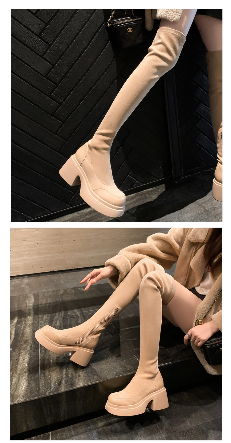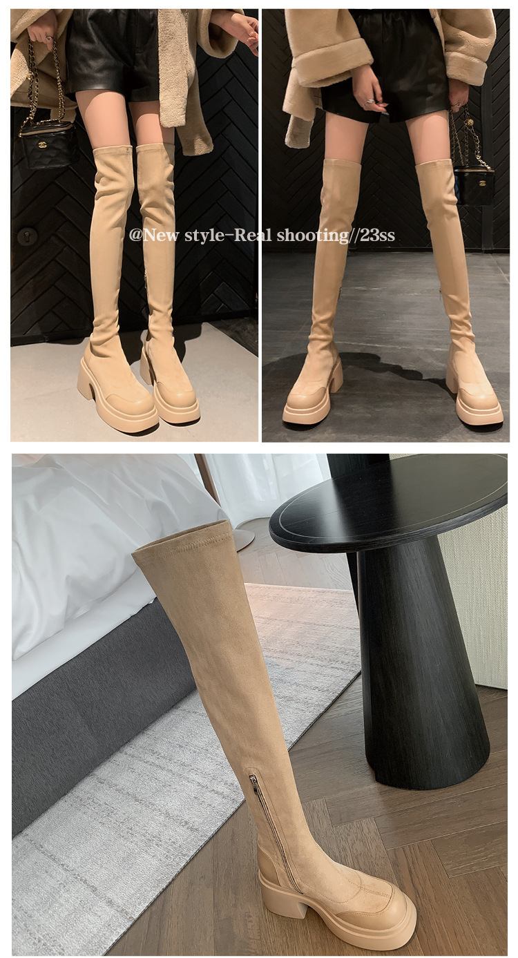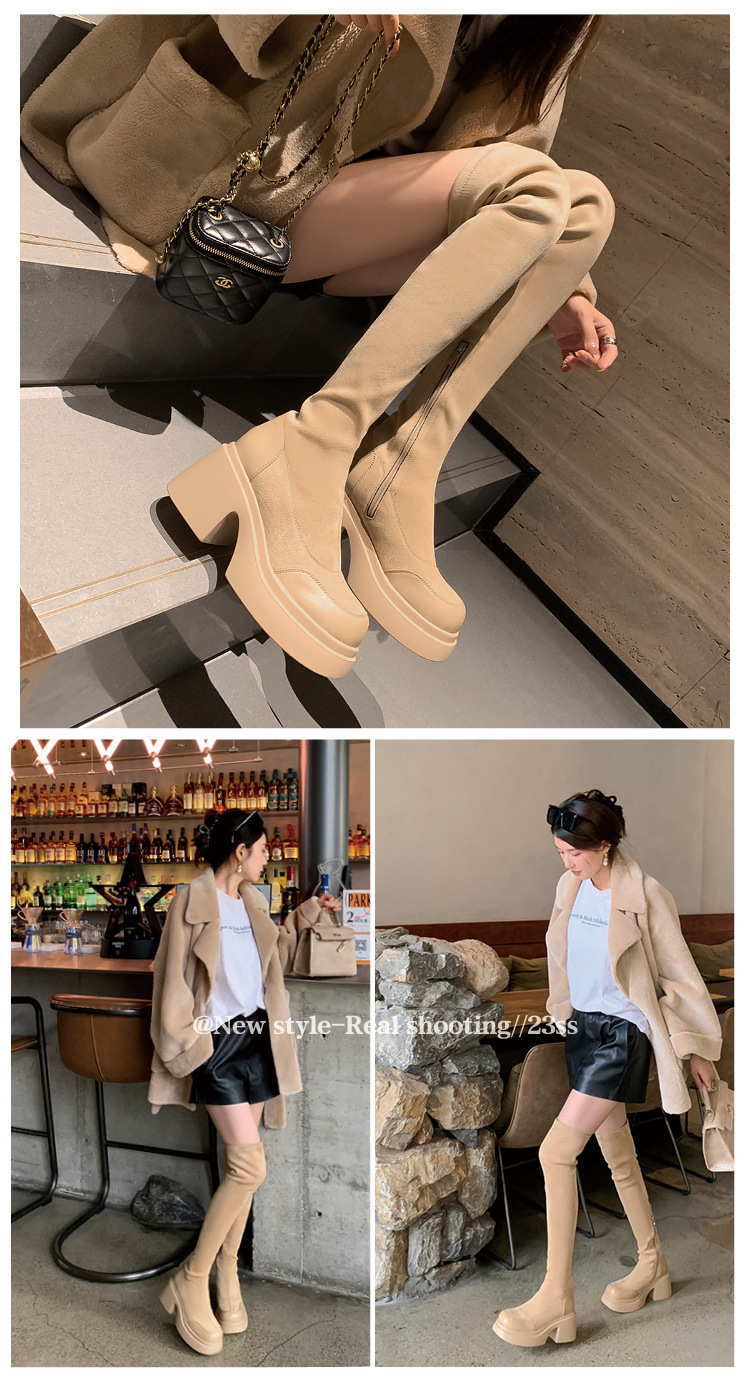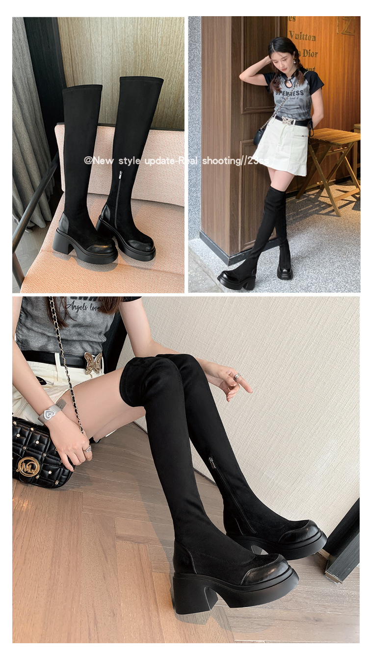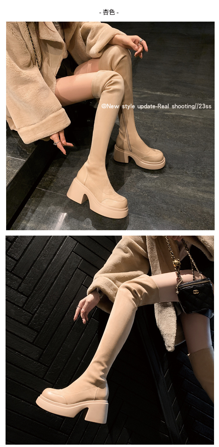 2024 겨울 새 무릎 부츠 여성 두꺼운 바닥 부츠 기사 여성 신발 마틴 신발 파워 하이 부츠스토어 가기