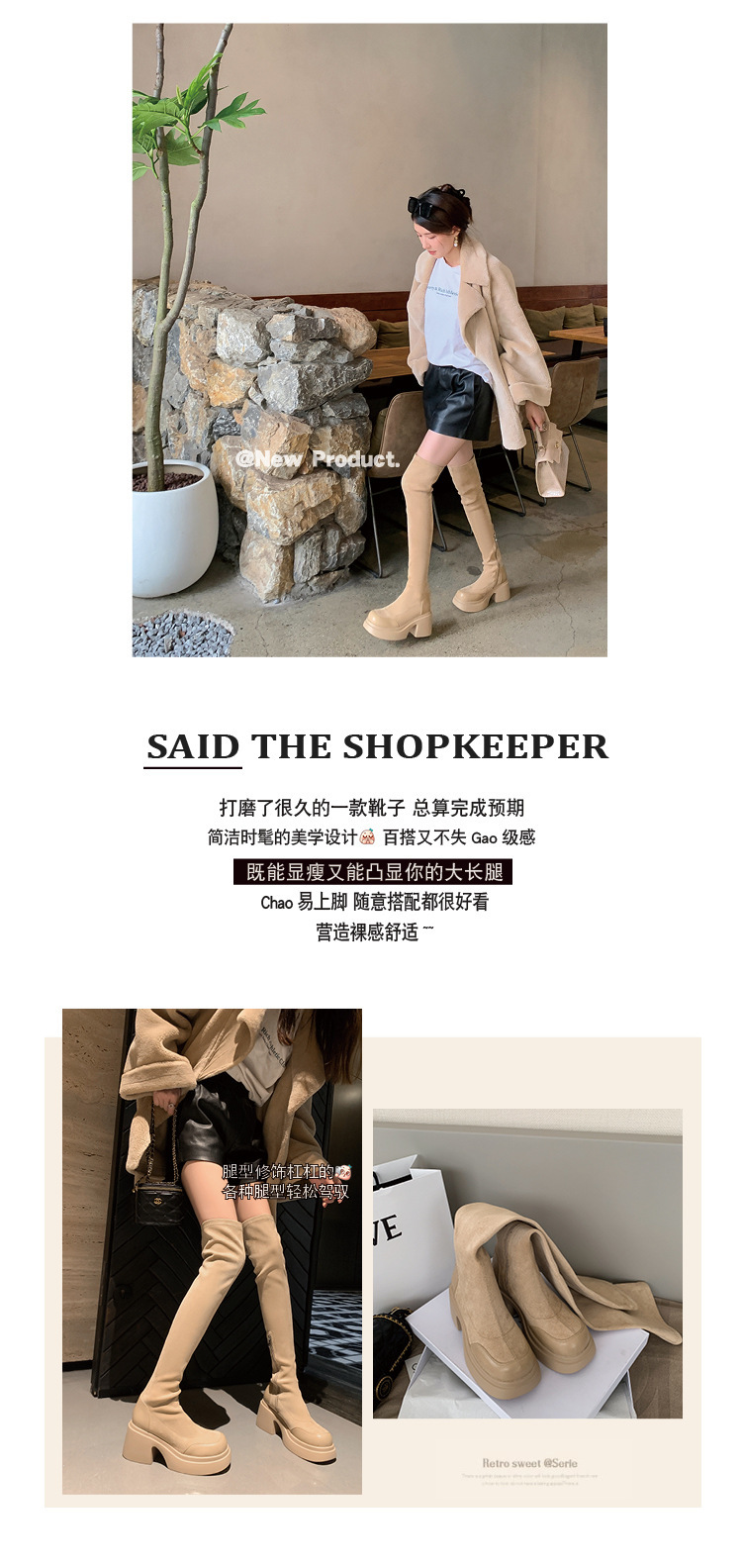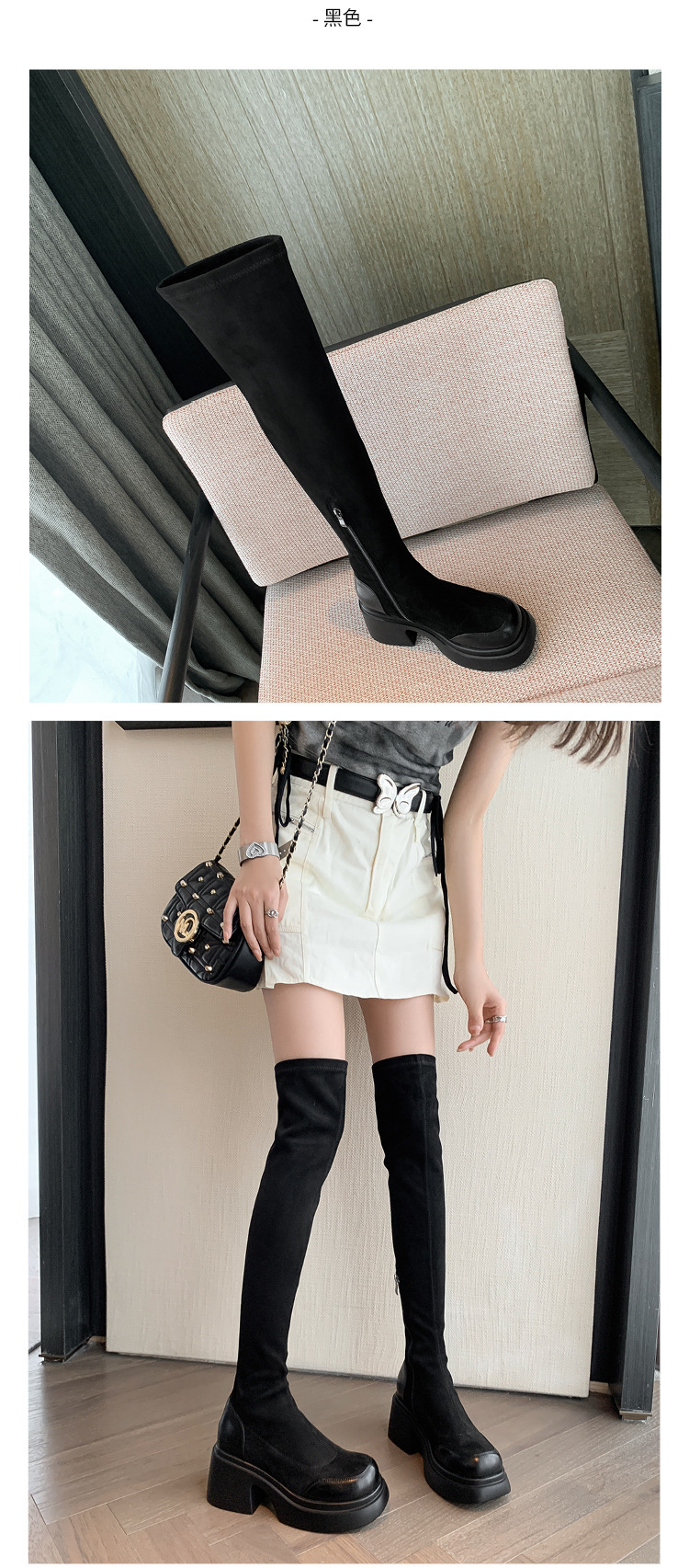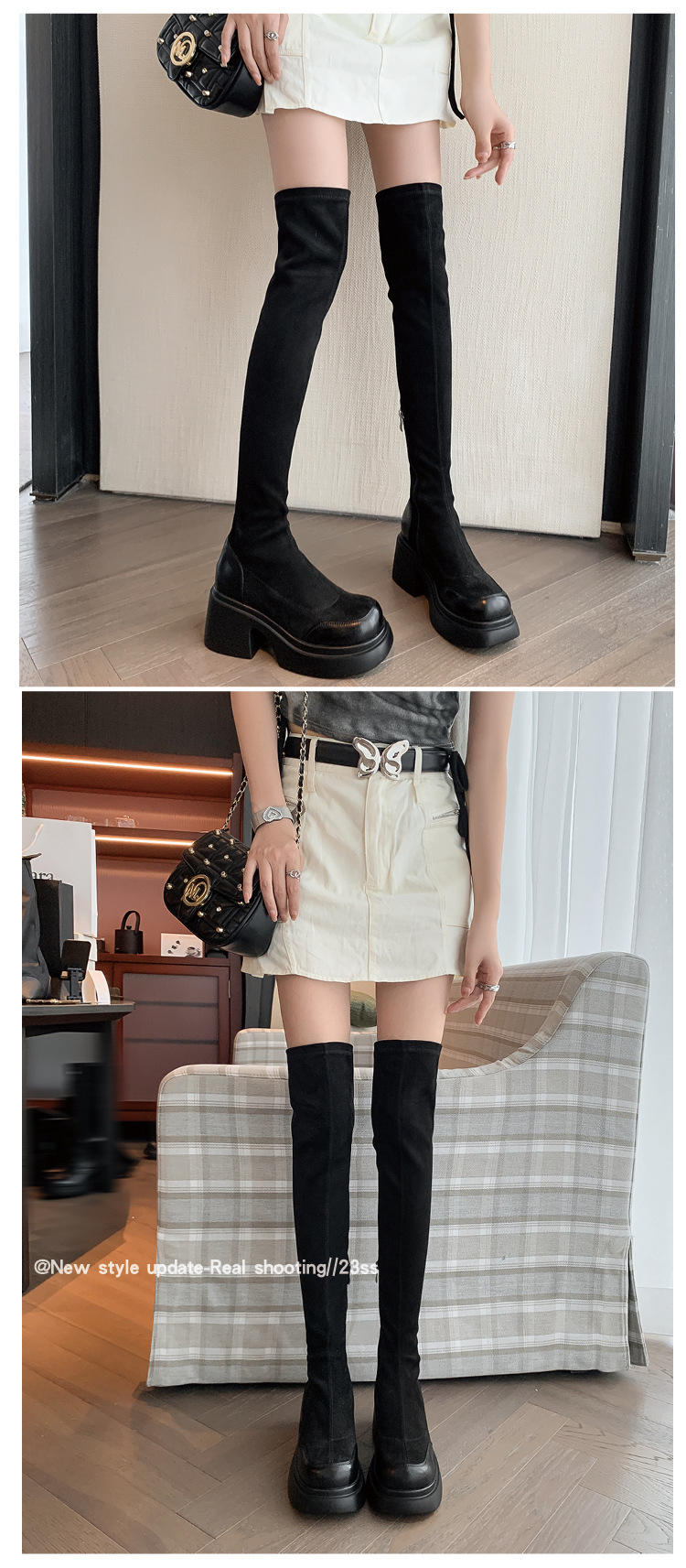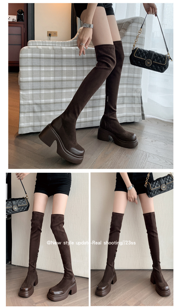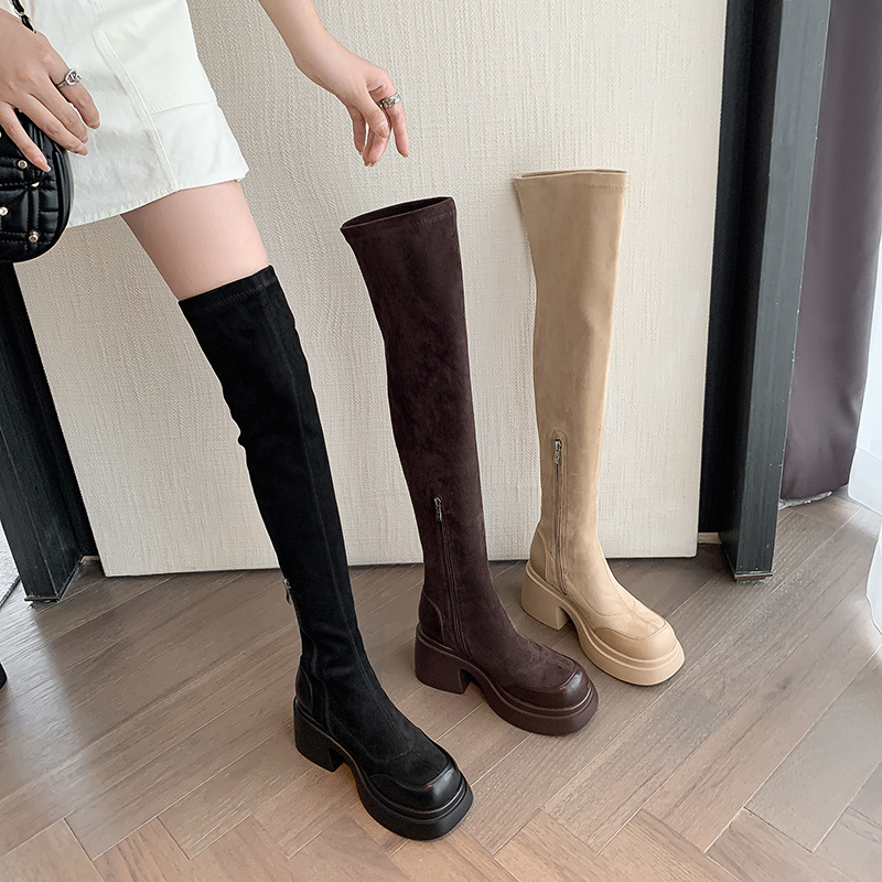 2024 겨울 새 무릎 부츠 여성 두꺼운 바닥 부츠 기사 여성 신발 마틴 신발 파워 하이 부츠스토어 가기