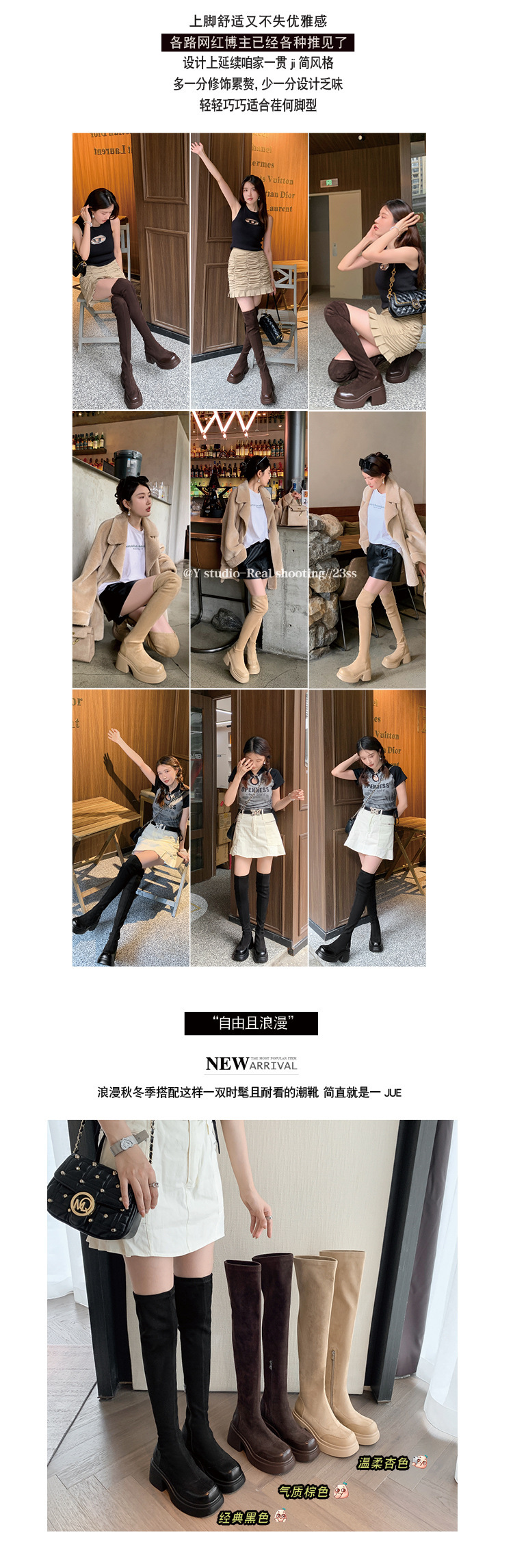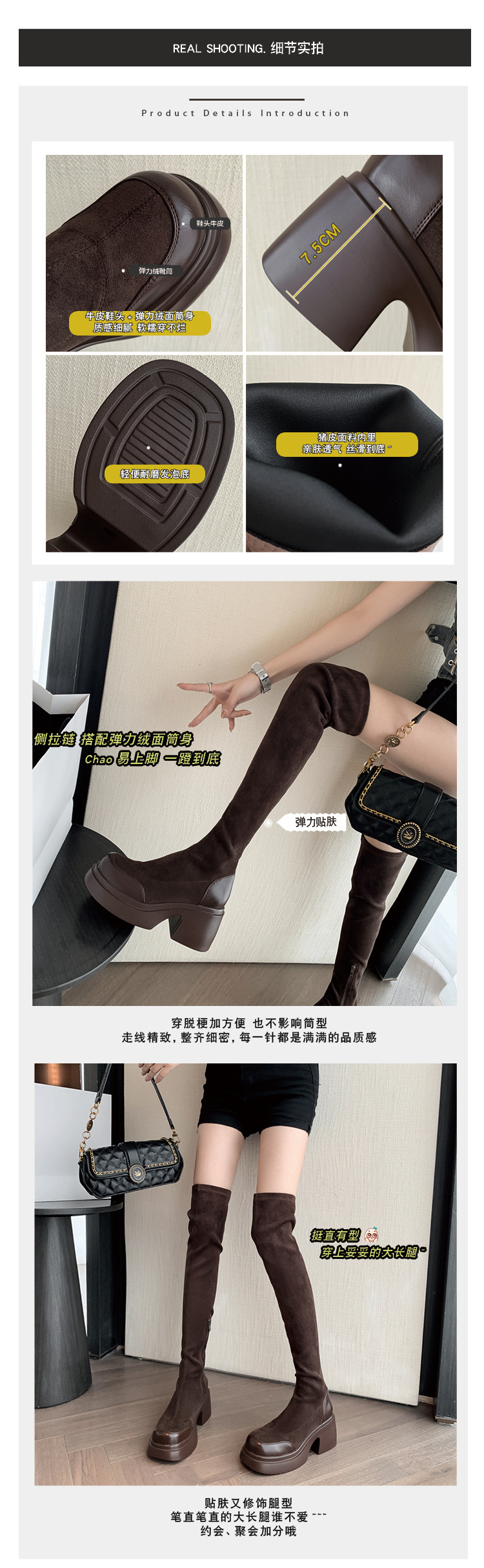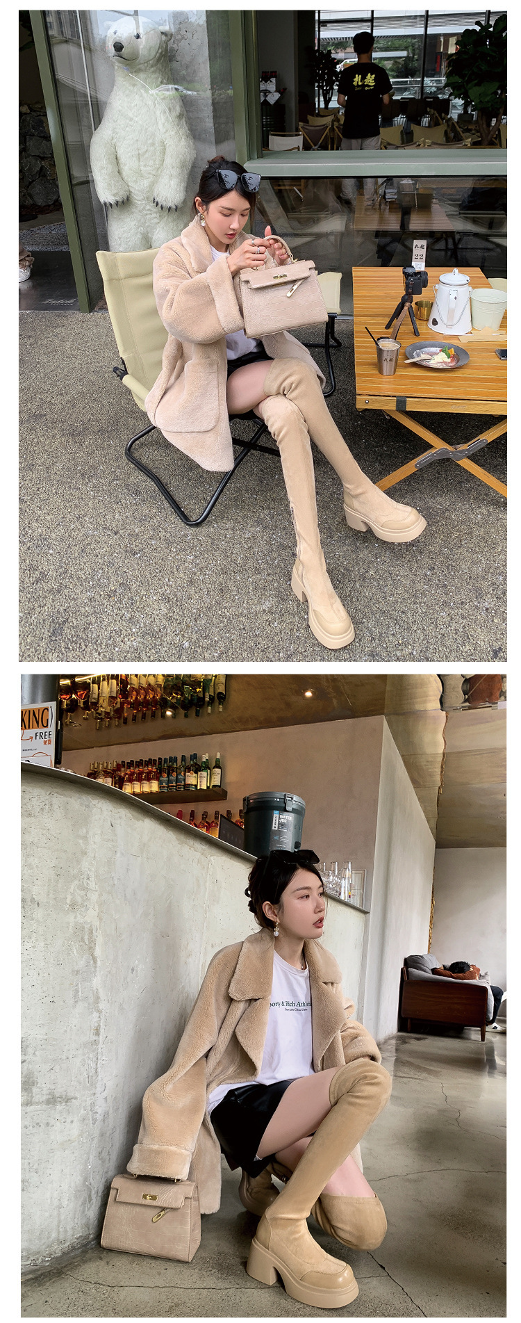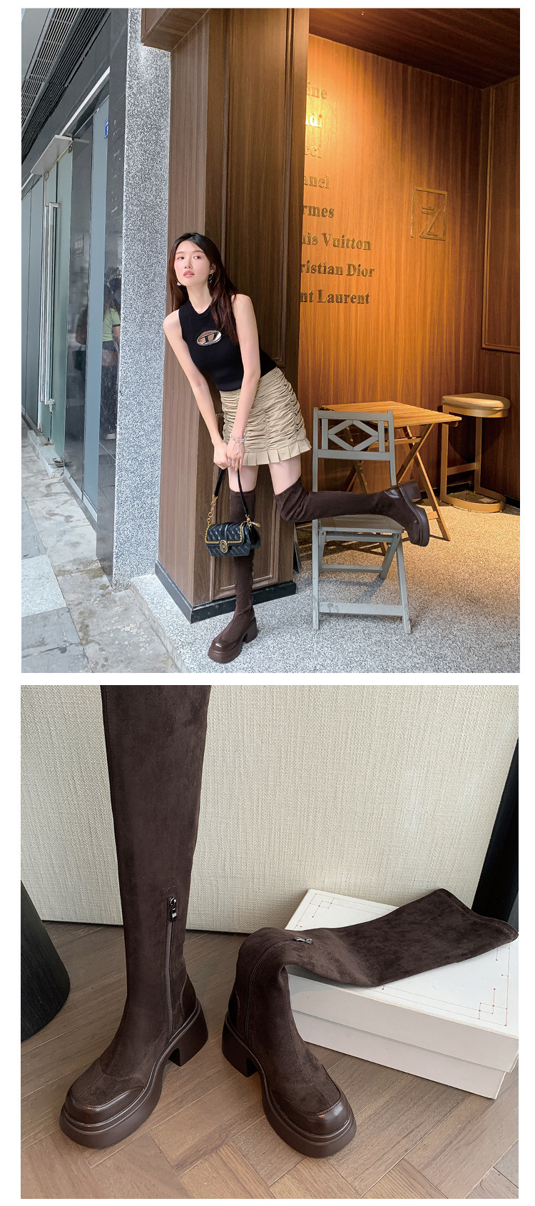 2024 겨울 새 무릎 부츠 여성 두꺼운 바닥 부츠 기사 여성 신발 마틴 신발 파워 하이 부츠스토어 가기