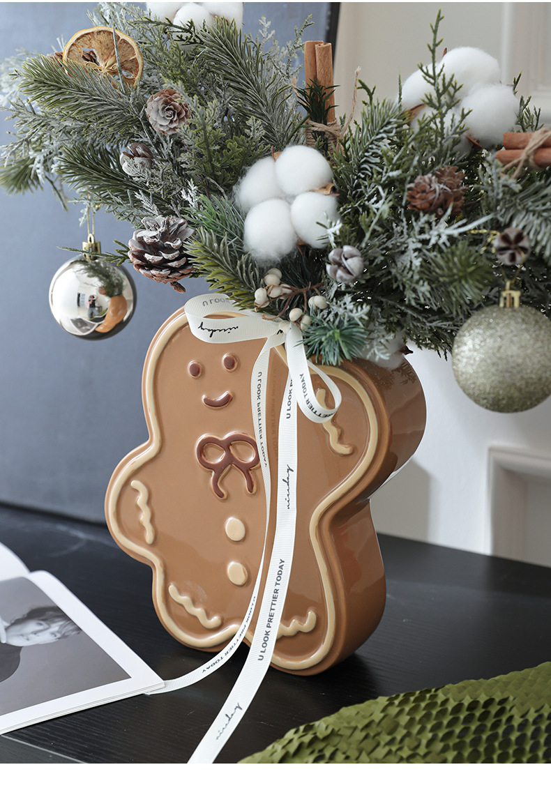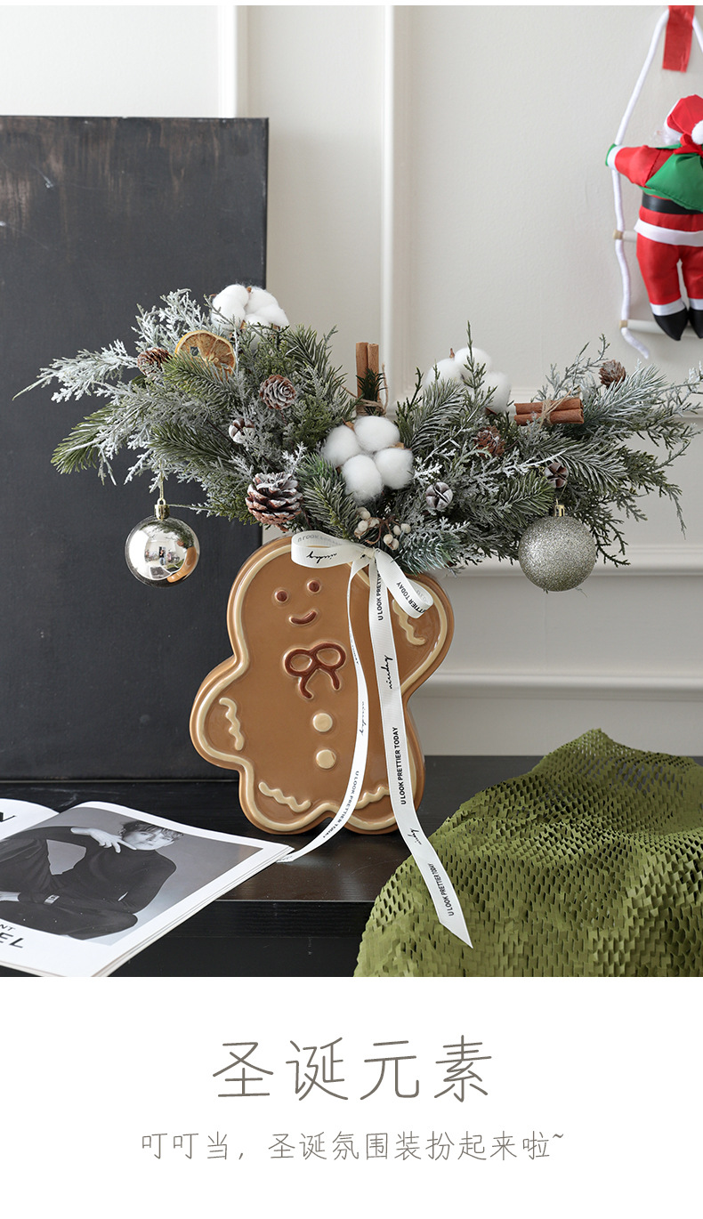 크리스마스 선물 진저 브레드 맨 세라믹 꽃병 중세 높은 감각 꽃꽂이 작은 꽃병 국경 창조적 인 장식 장식품스토어 가기