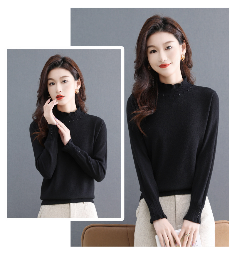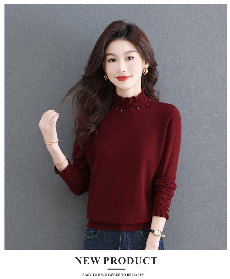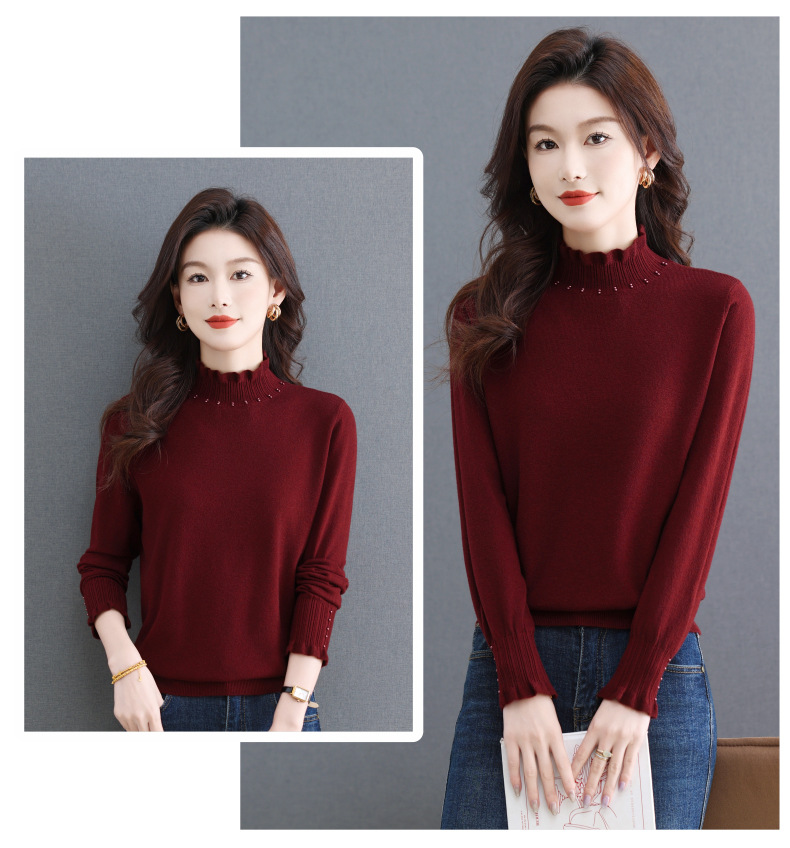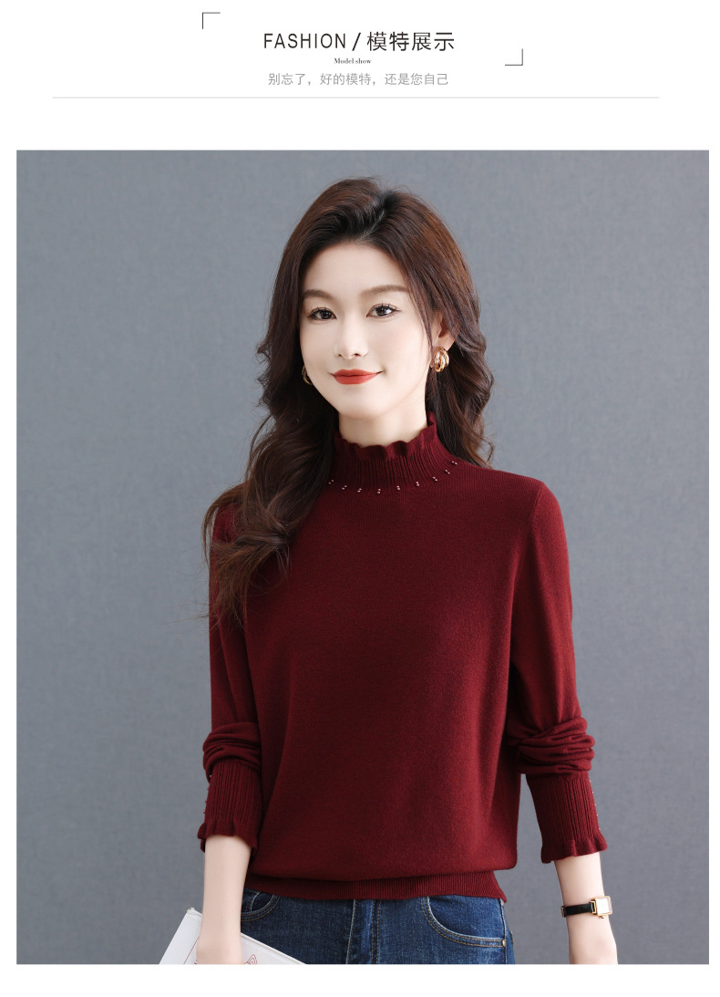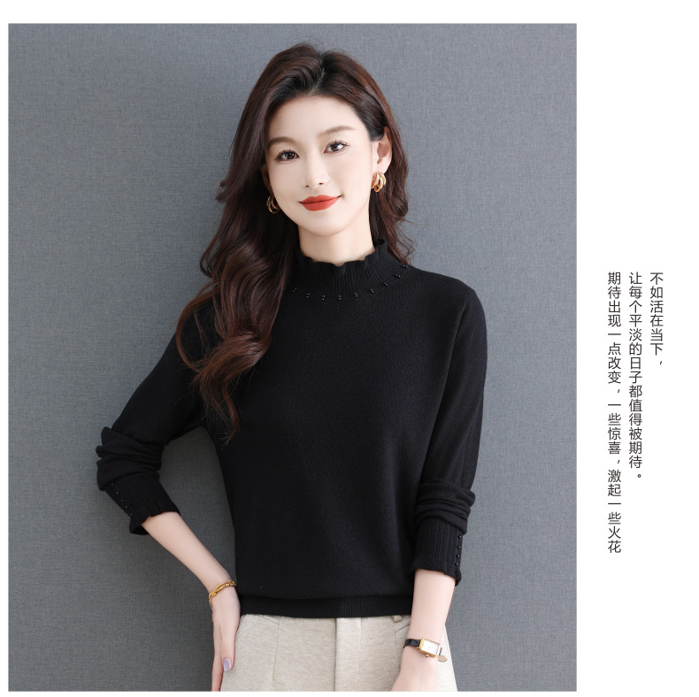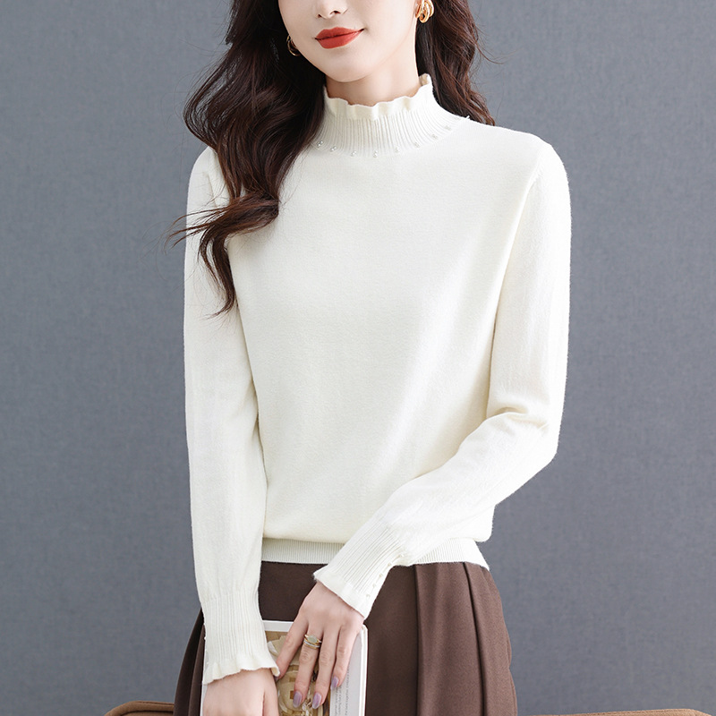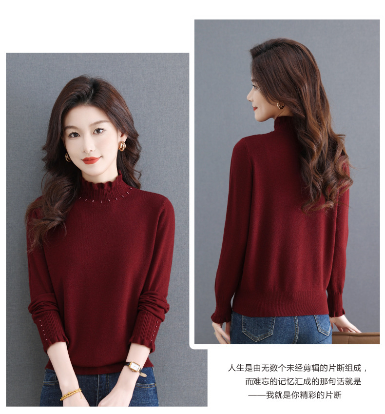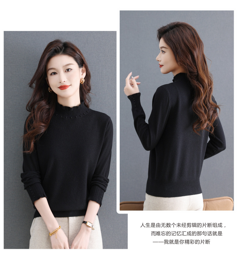 Auricularie Mock Collar Beaded 스웨터 여성의 가을 및 겨울 새로운 스타일 연령 감소 니트 베이스 셔츠 여성용 내부 탑