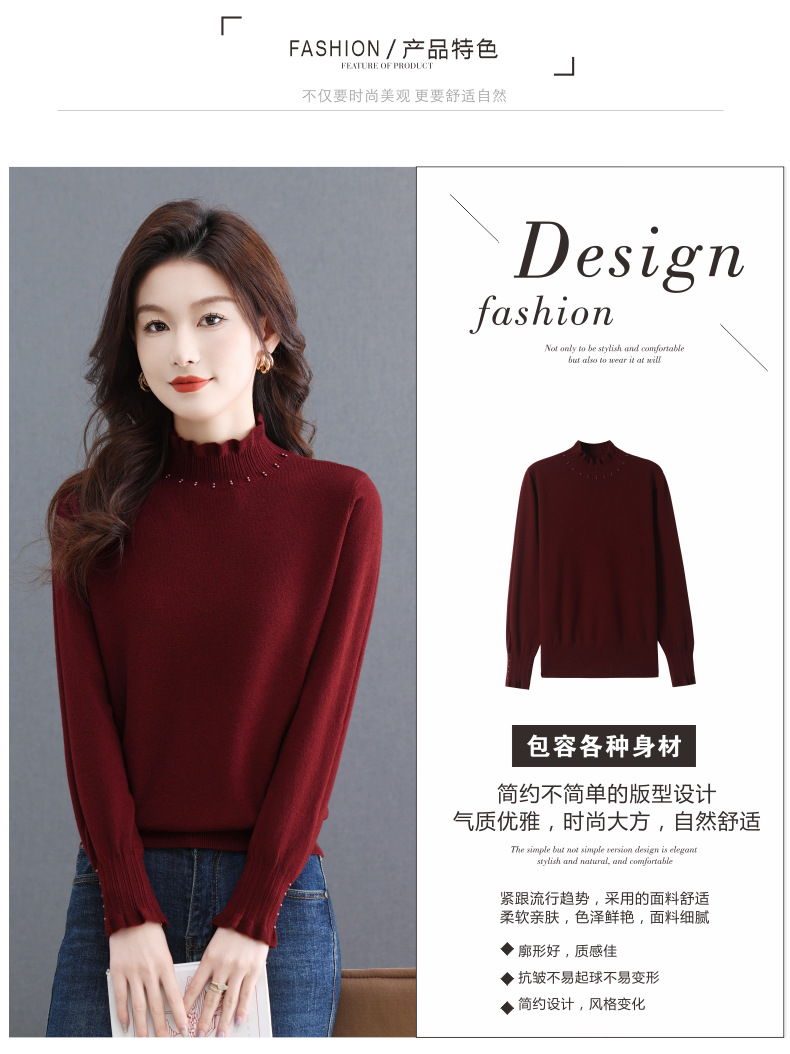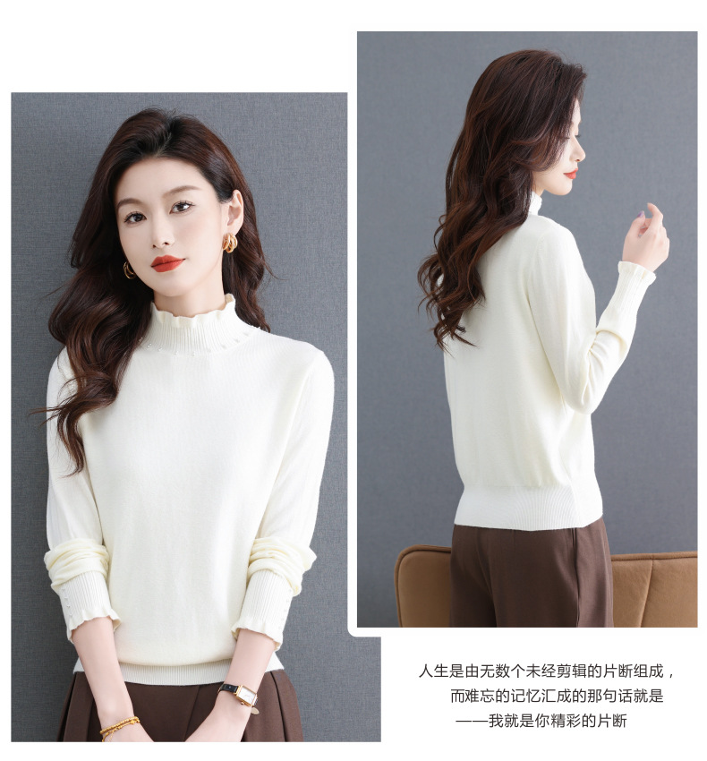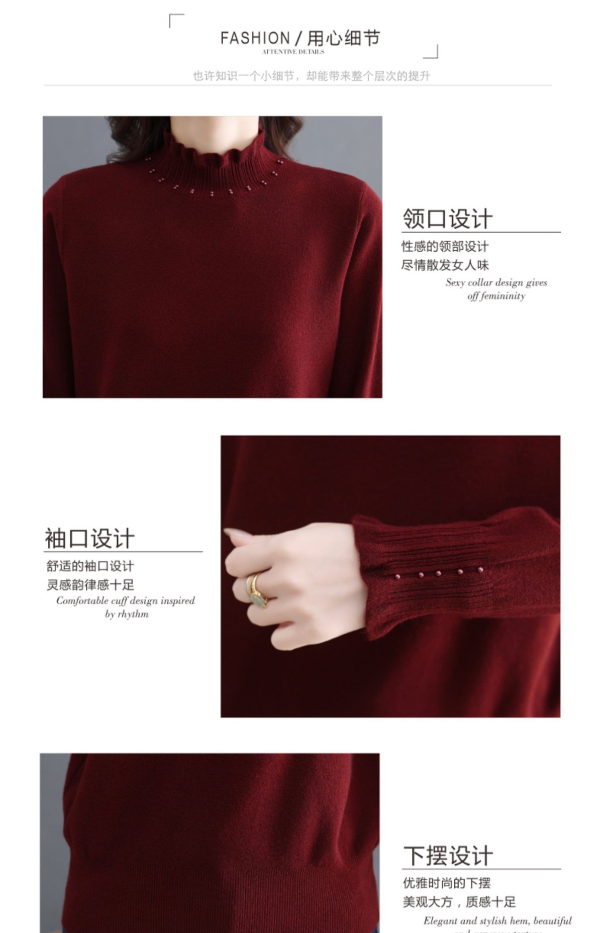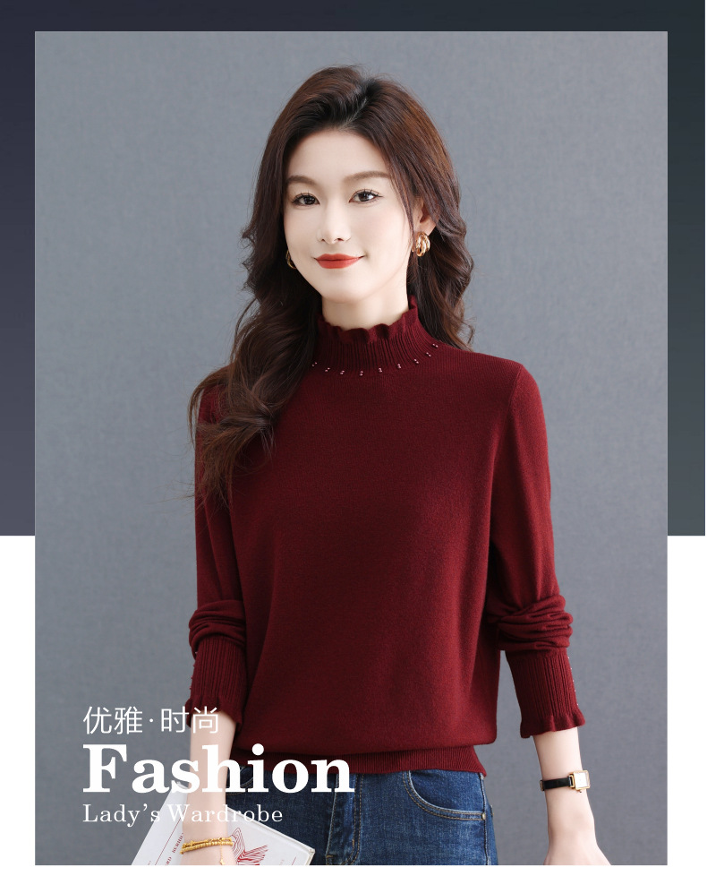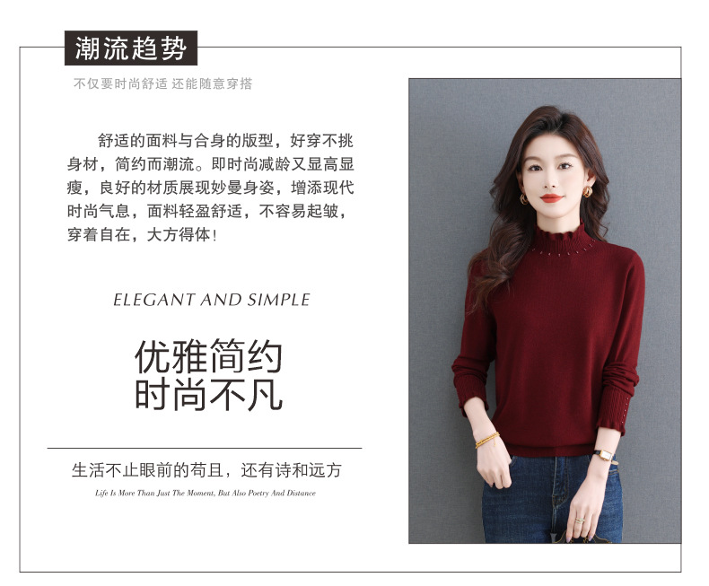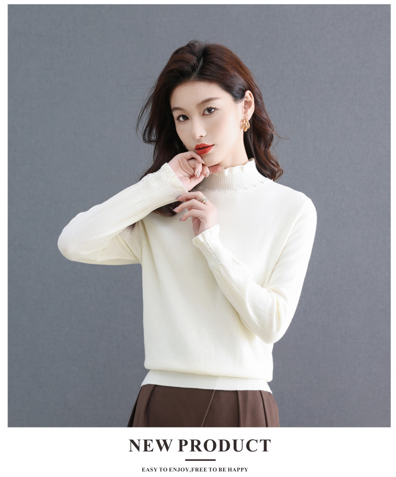 Auricularie Mock Collar Beaded 스웨터 여성의 가을 및 겨울 새로운 스타일 연령 감소 니트 베이스 셔츠 여성용 내부 탑