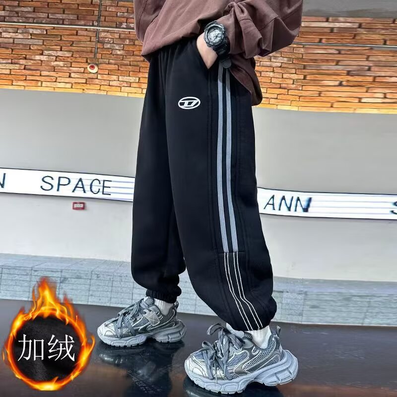 소년 기모 바지 가을 겨울 2024 새로운 어린이 가을 착용 스포츠 바지 큰 어린이 운동복 두꺼운 캐주얼 바지