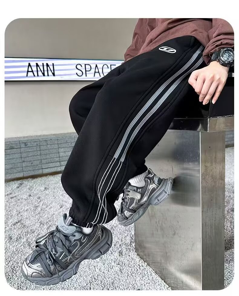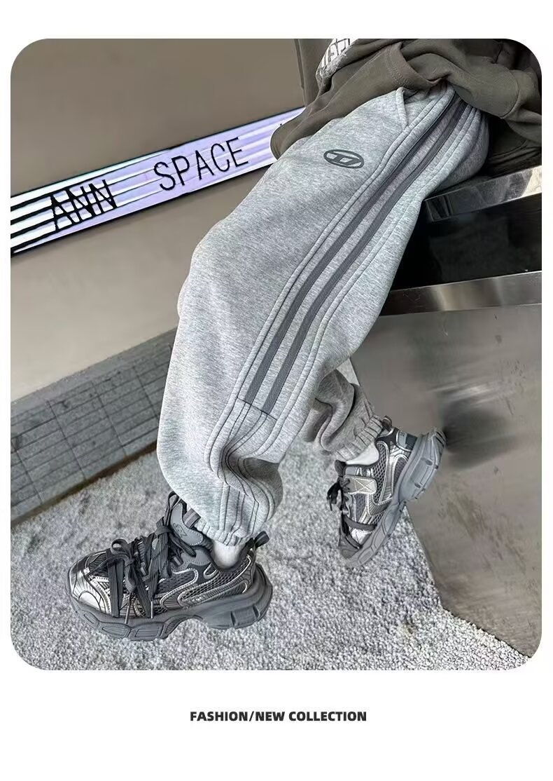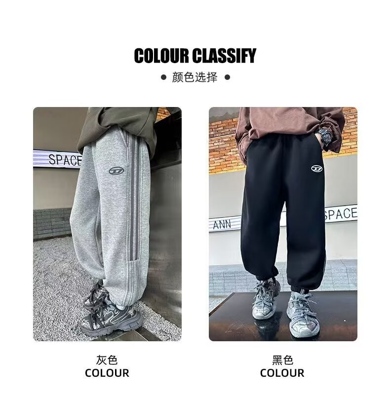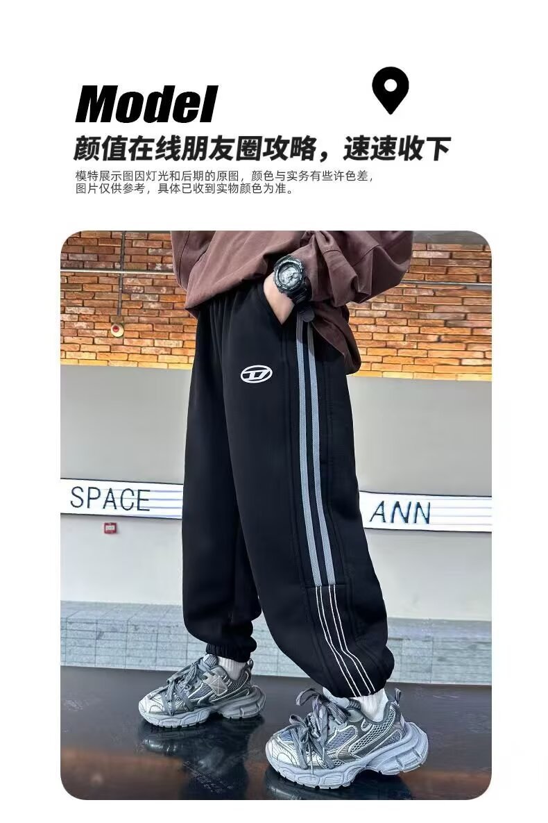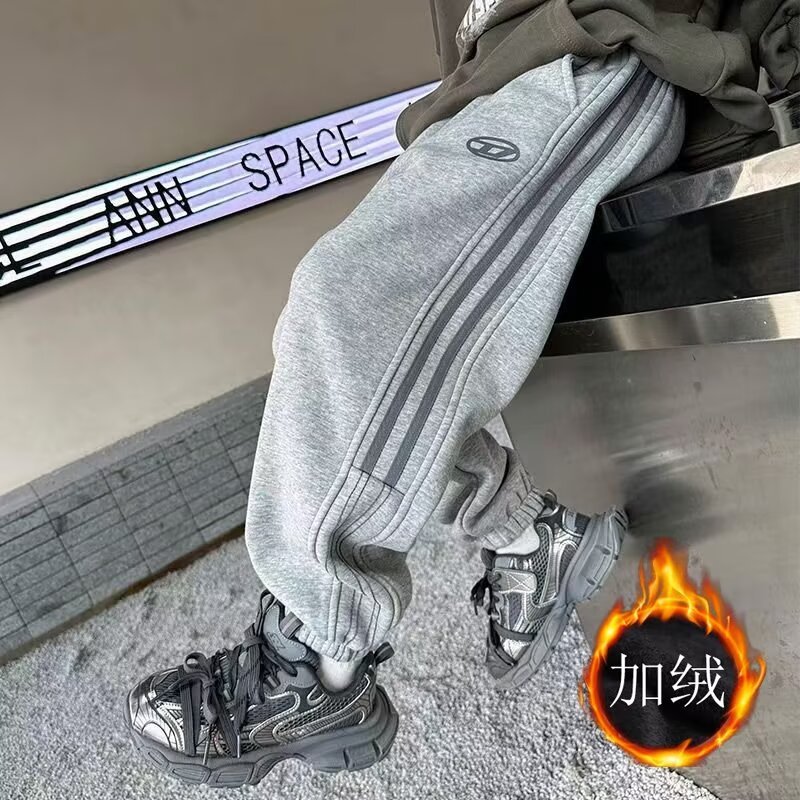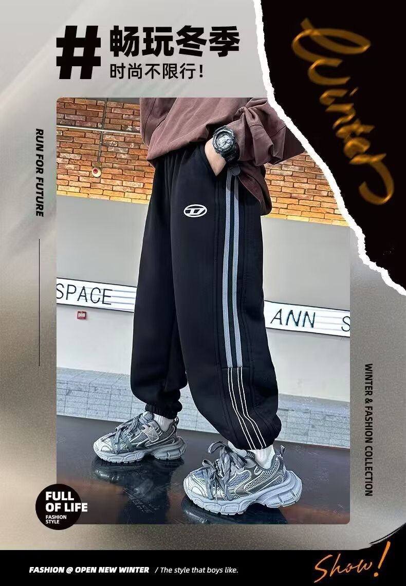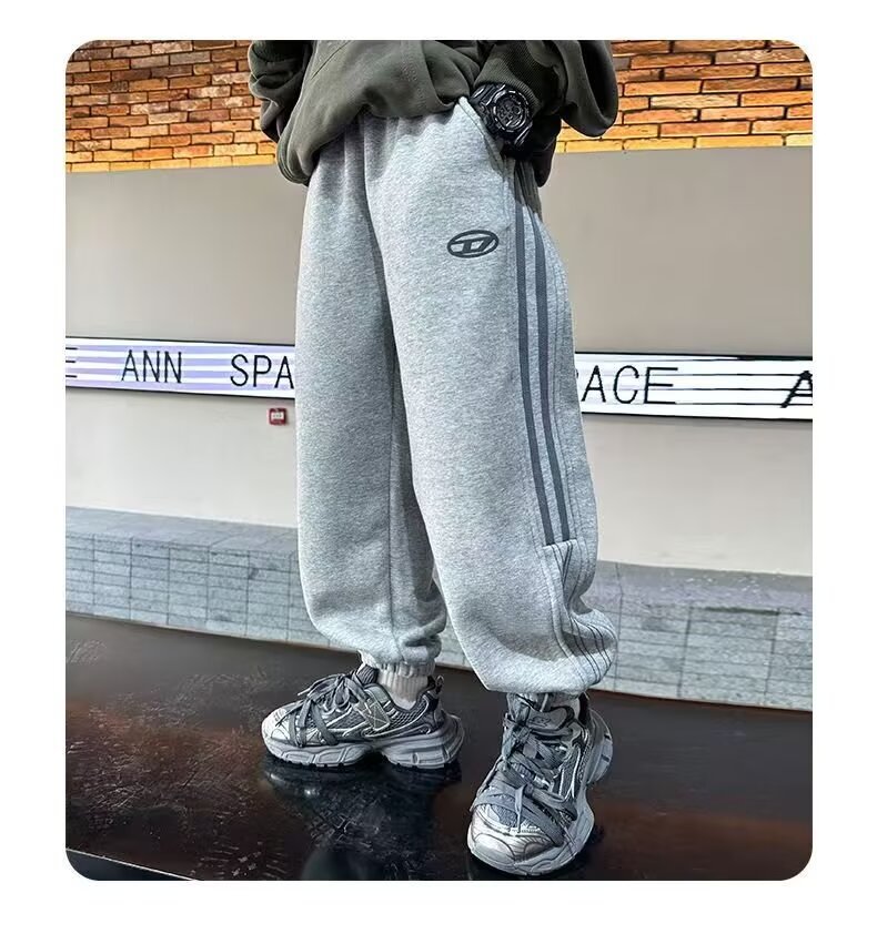 소년 기모 바지 가을 겨울 2024 새로운 어린이 가을 착용 스포츠 바지 큰 어린이 운동복 두꺼운 캐주얼 바지스토어 가기