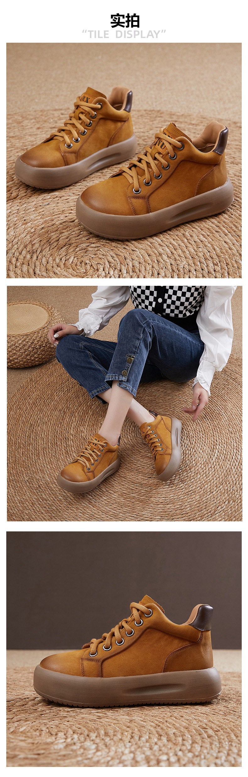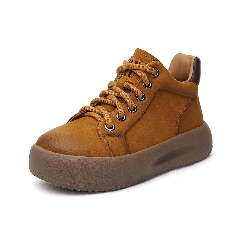소가죽의 첫 번째 레이어 2024 가을 새로운 여성 신발 캐주얼 이베이 빈티지 플랫폼 하이 탑 신발 여성 패션 레이스 업 부츠스토어 가기