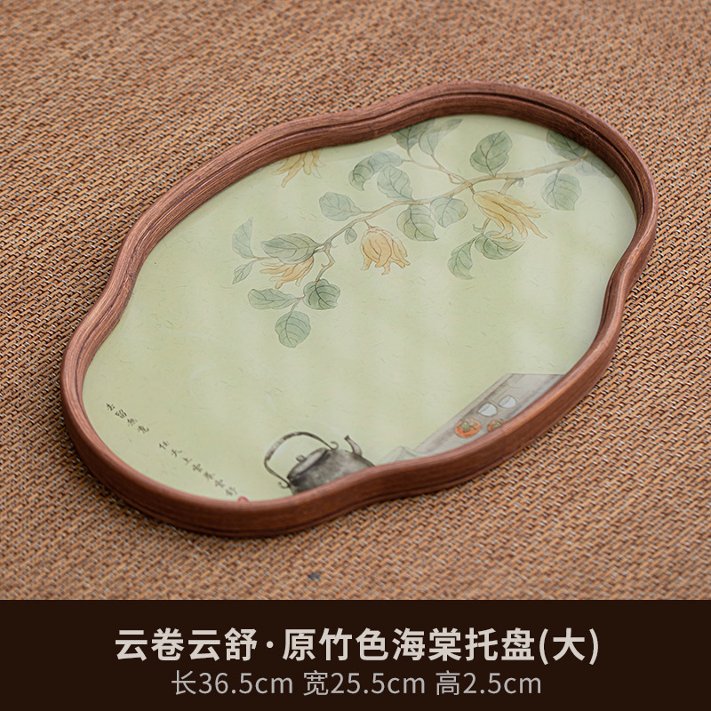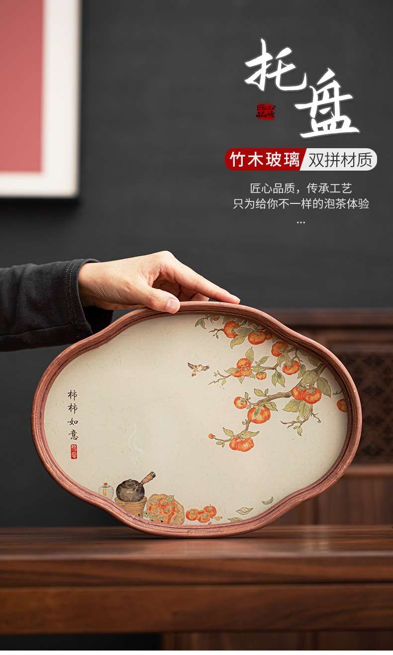 중국 스타일의 감 루이 유리 차 트레이 빈티지 대나무 차 트레이 간단한 다방 과일 디쉬 포인트 플레이트 저장 플레이트