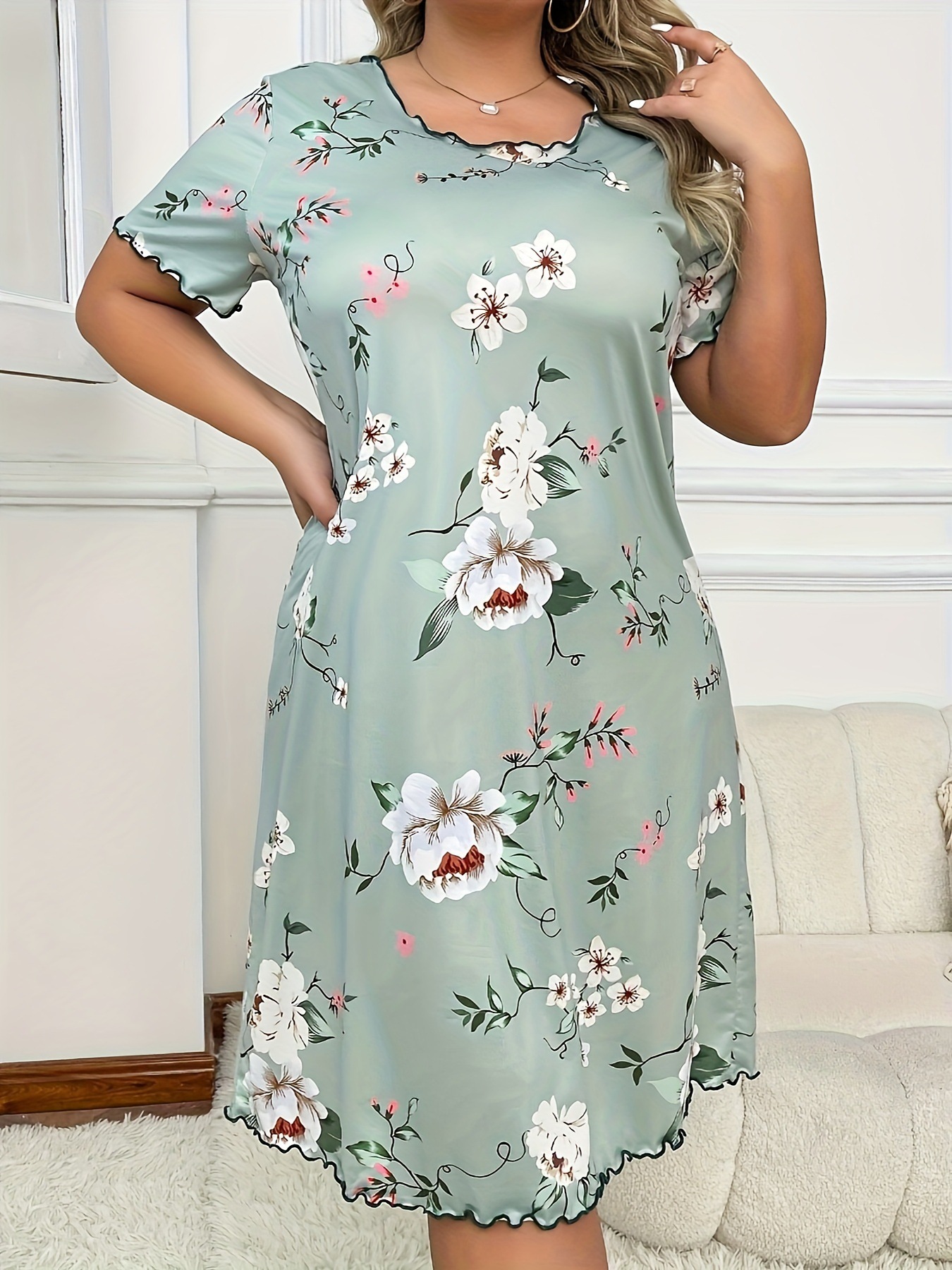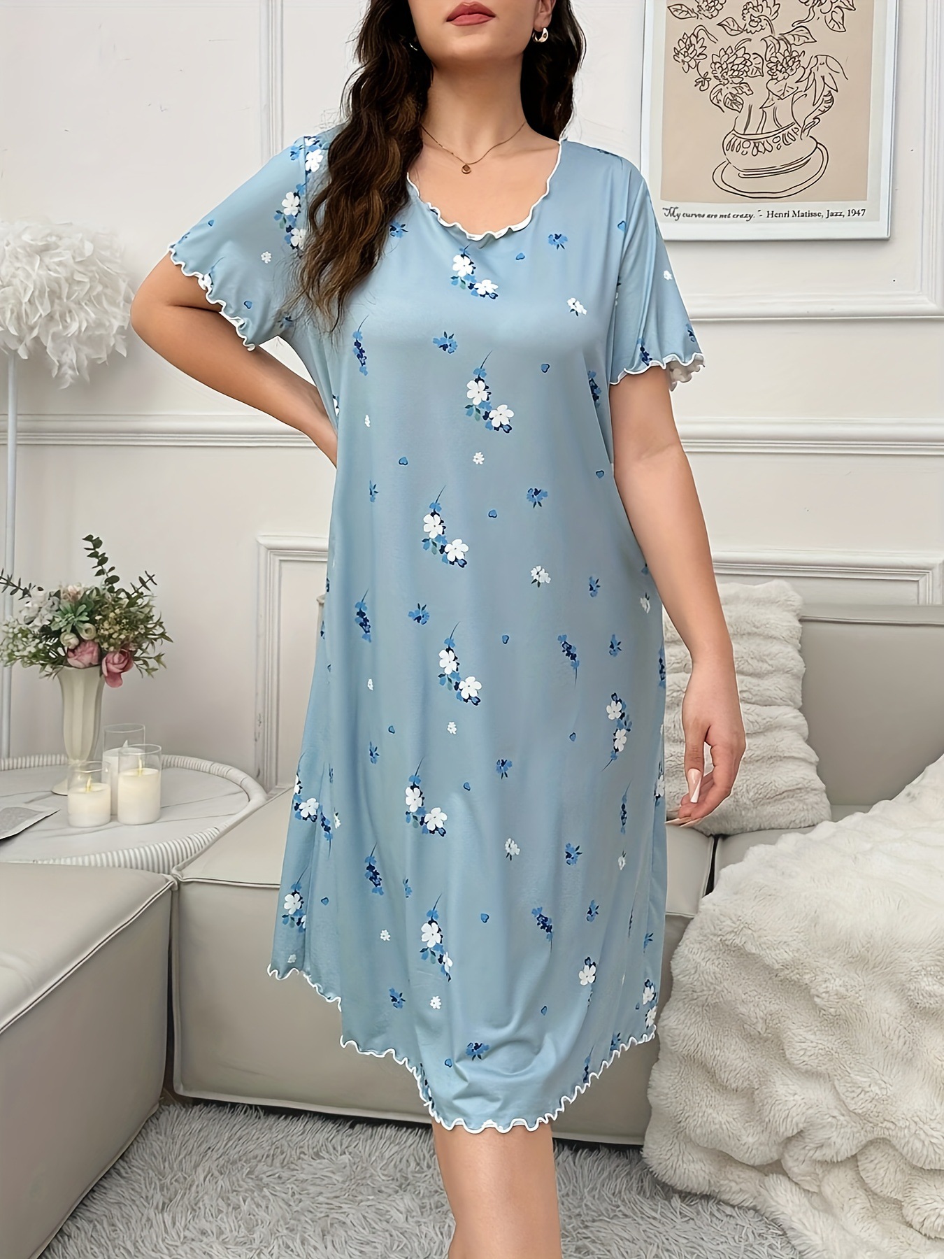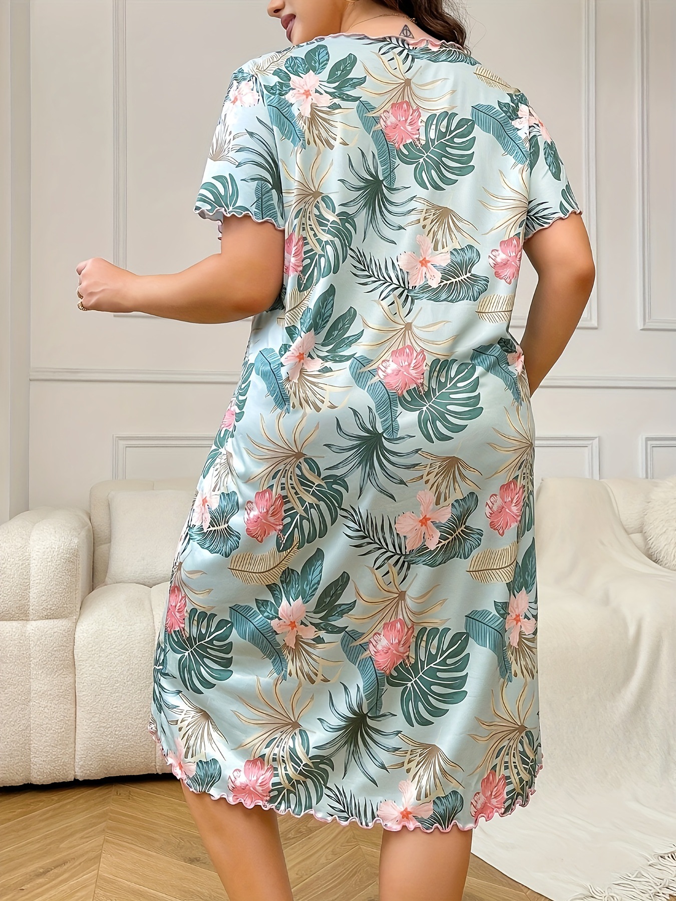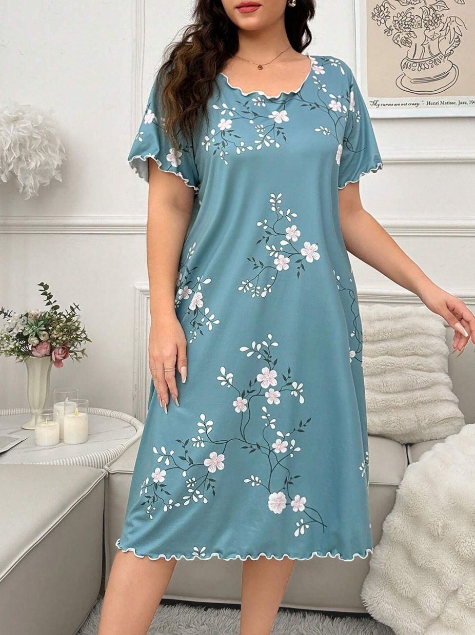 아마존 독립 역 2024 유럽과 미국의 새로운 패션 홈 옷 파자마 원피스 여성 짧은 소매 티셔츠 스커트스토어 가기