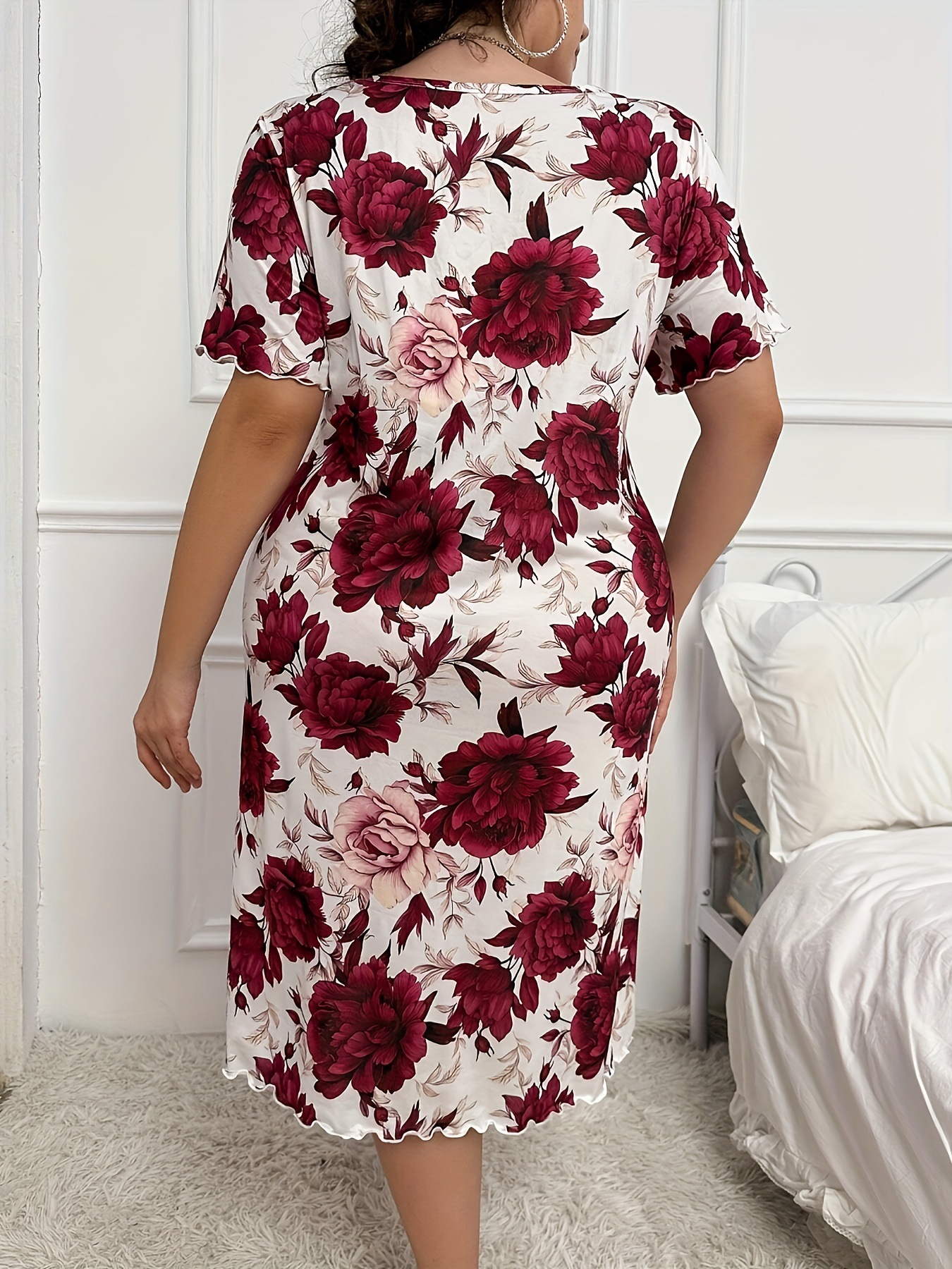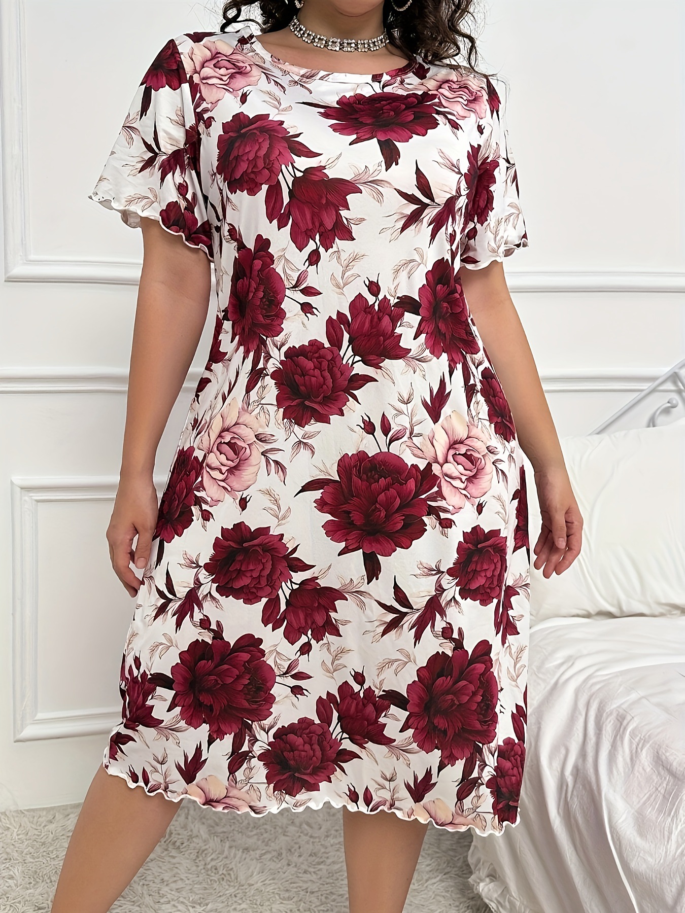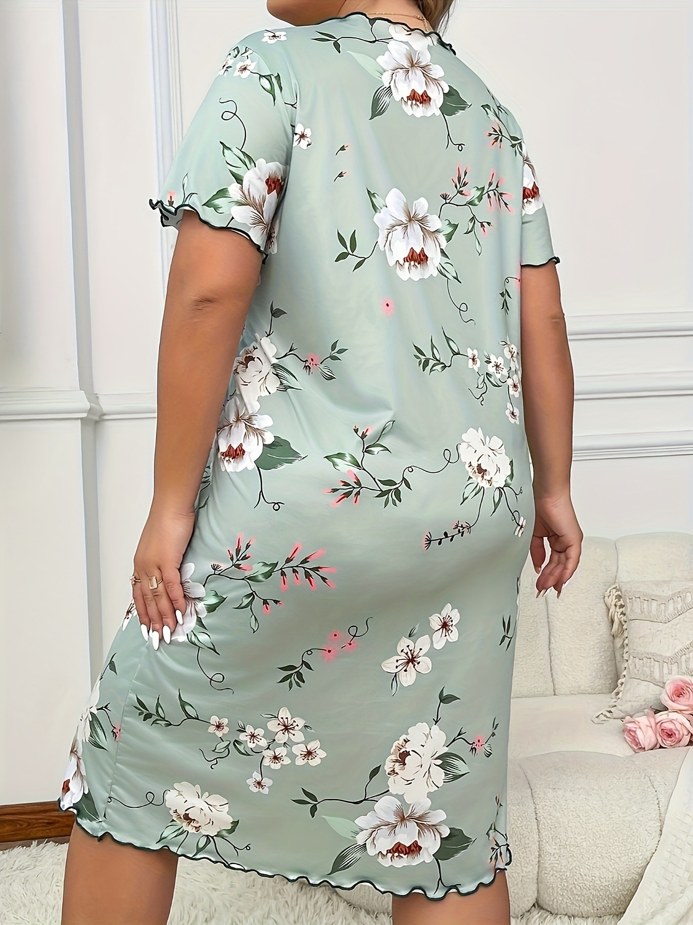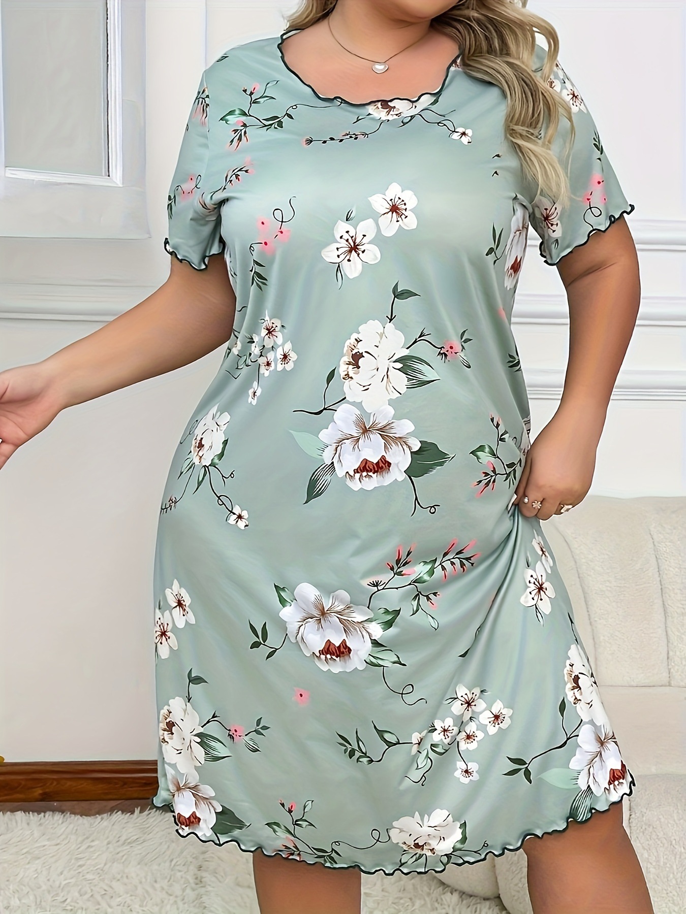 아마존 독립 역 2024 유럽과 미국의 새로운 패션 홈 옷 파자마 원피스 여성 짧은 소매 티셔츠 스커트스토어 가기