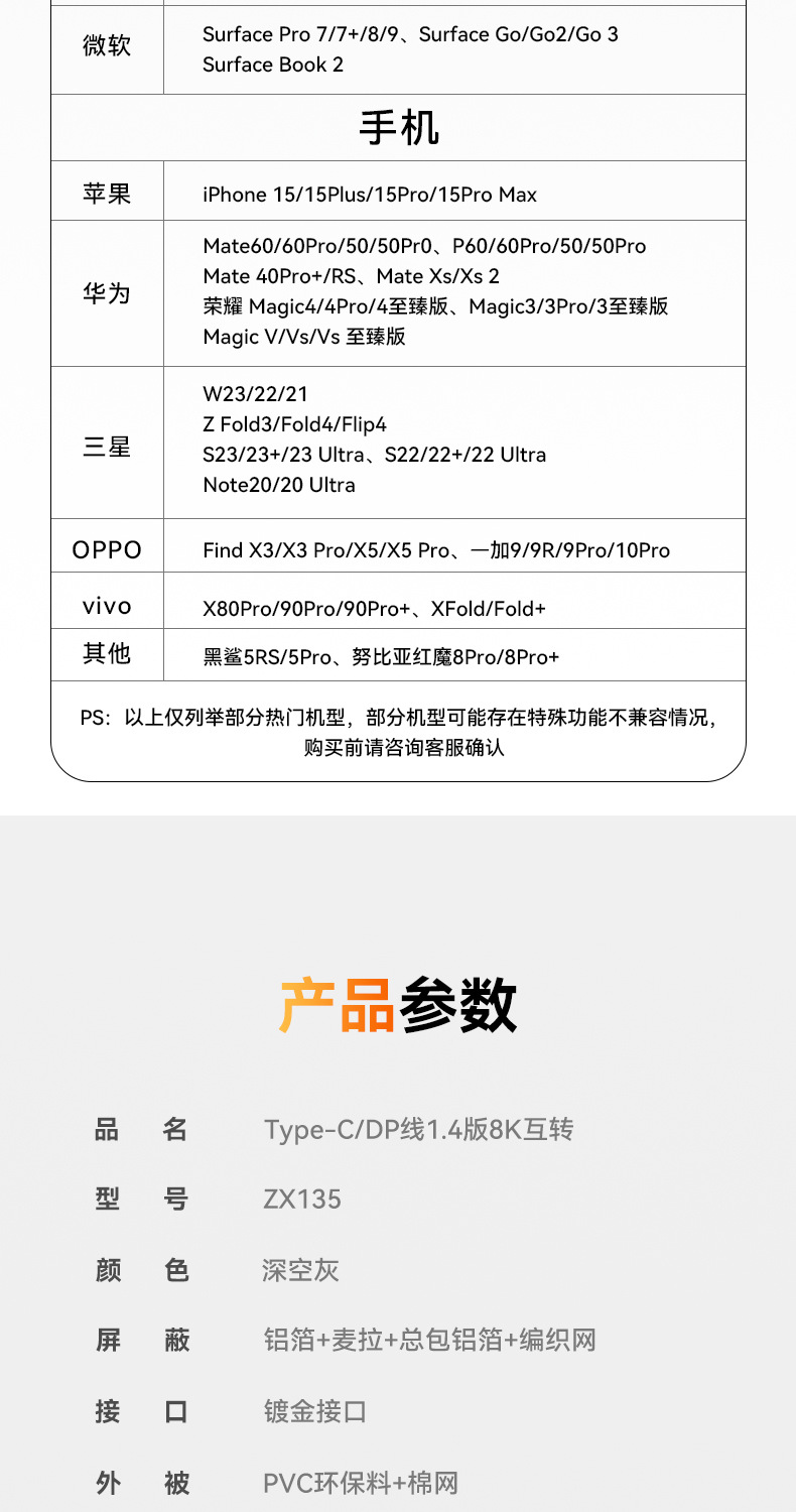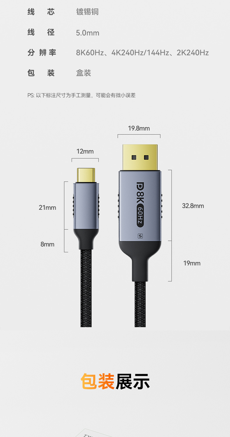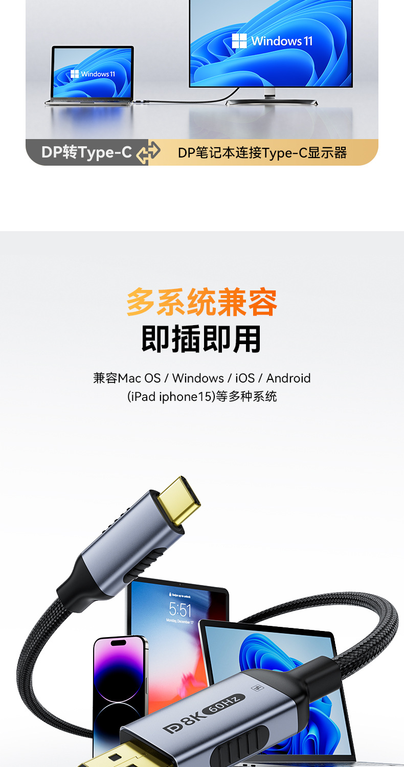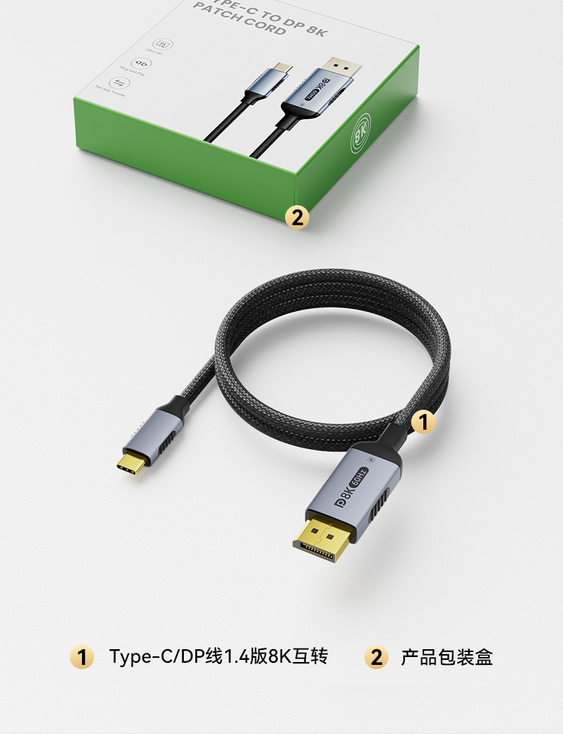 • ZX135 Type-C/DP 라인 1.4 버전 8K 상호 변환(면 메쉬 1.5m 포함)